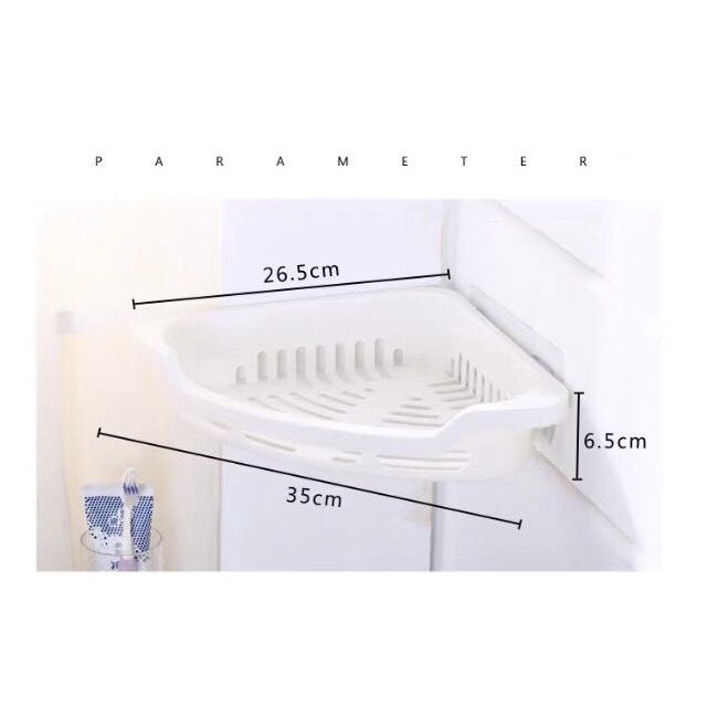Nhà cửa & Đời sống > Đồ dùng phòng tắm > Kệ để đồ phòng tắm || Kệ góc tam giác dính tường để đồ nhà tắm dán tường freeship siêu tiện lợi kệ hít tườngCòn hàng