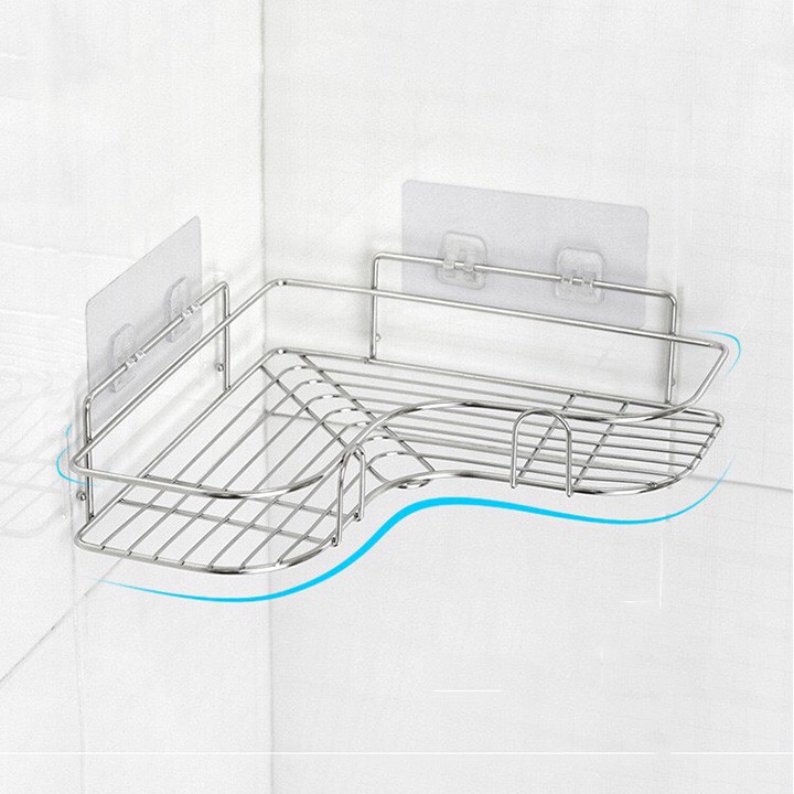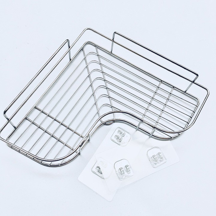 Kệ góc dùng trong nhà tắm, nhà bếp bằng inox không gỉ kèm móc dán tường cao cấp
