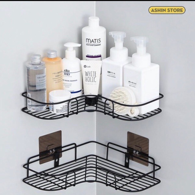 Kệ Góc treo Dán Góc Tường siêu chắc (kèm 2 miếng dán)🍃 Kệ góc, Giá đỡ treo dán góc tường dễ dàng tháo lắp nơi phòng tắm, nhà bếp, phòng ngủ đựng mỹ phẩm, gia vị.