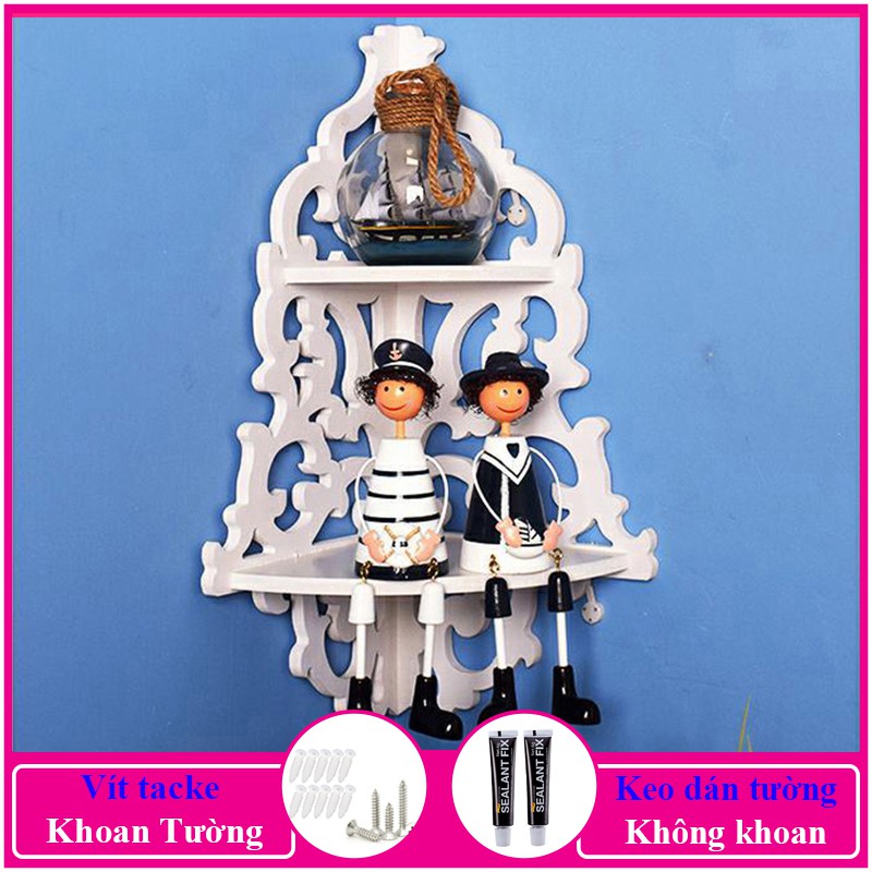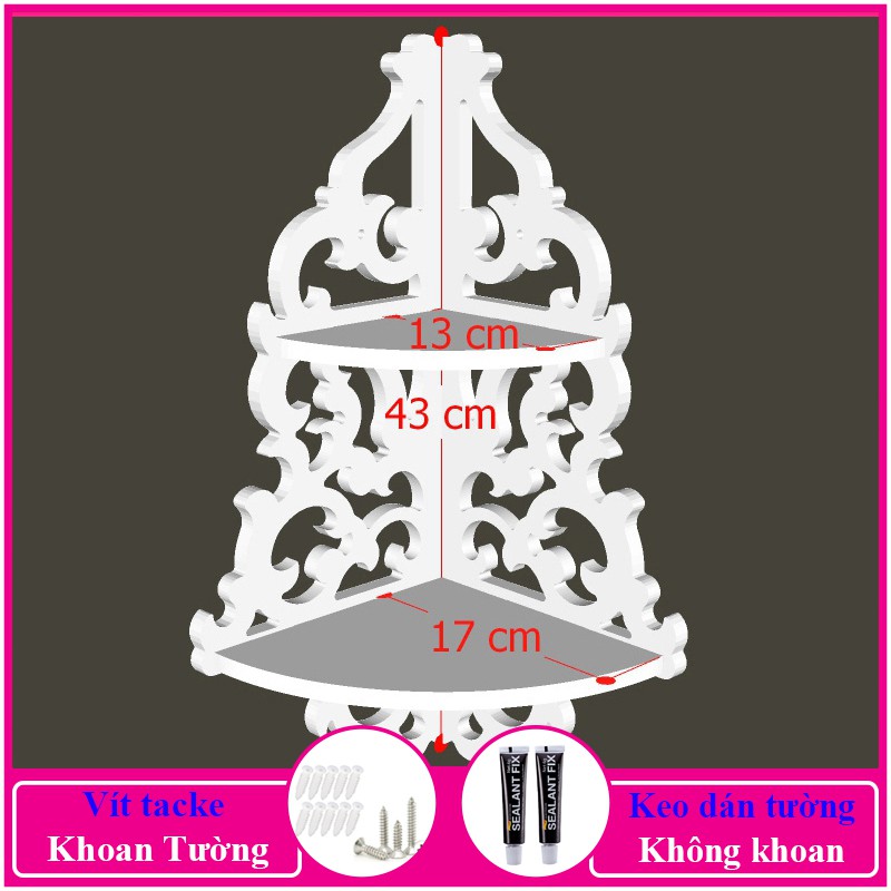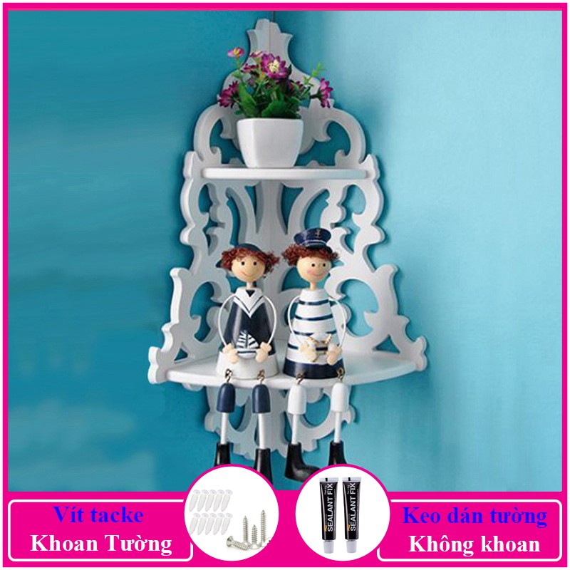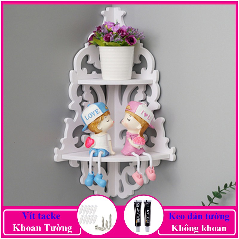 Nhà cửa & Đời sống > Nội thất > Kệ & Giá || Kệ góc treo tường, kệ trang trí không cần khoan, chất liệu gỗ PiTech cao cấp màu trắng - a01Còn hàng