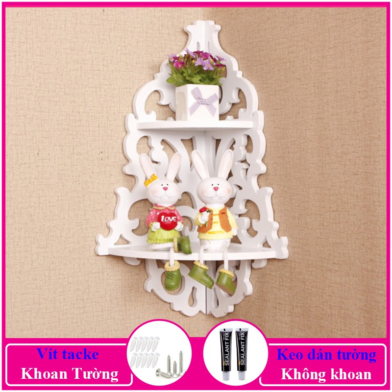 Kệ góc treo tường, kệ trang trí không cần khoan, chất liệu gỗ PiTech cao cấp màu trắng - a01