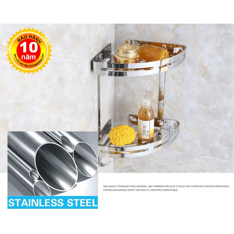 - Kệ góc treo tường nhà tắm (2 tầng) SUS304 là sản phẩm tuyệt vời với chất lượng cao, có thiết kế nhỏ gọn gắn vào góc tường, phù hợp với nhiều không gian nhà tắm nhỏ hẹp. Với chất liệu inox SUS304 bền vững, Kệ góc của chúng tôi không bị gỉ sét dưới tác động của hơi nước, sáng bóng vĩnh viễn, không những vậy còn có khả năng chịu lực tốt, độ bền dài lâu.