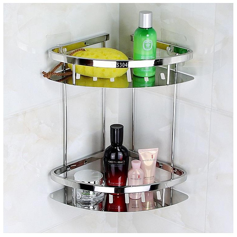 Kệ góc treo tường nhà tắm 2 tầng inox 304