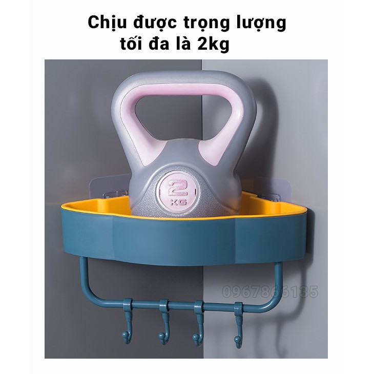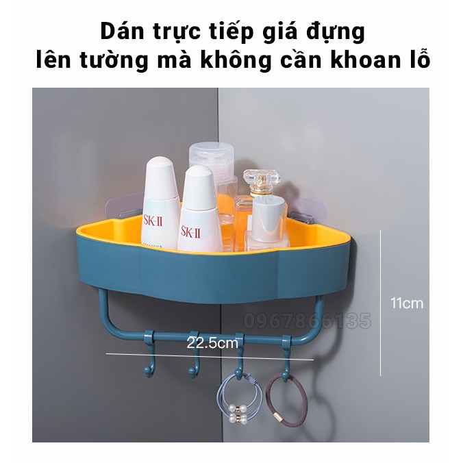 Kệ góc treo tường nhà tắm, nhà bếp tiện dụng bếp Kệ góc 2 lớp dán tường để đồ đa năng có móc treo tiện dụng➡️ ƯU ĐIỂM: