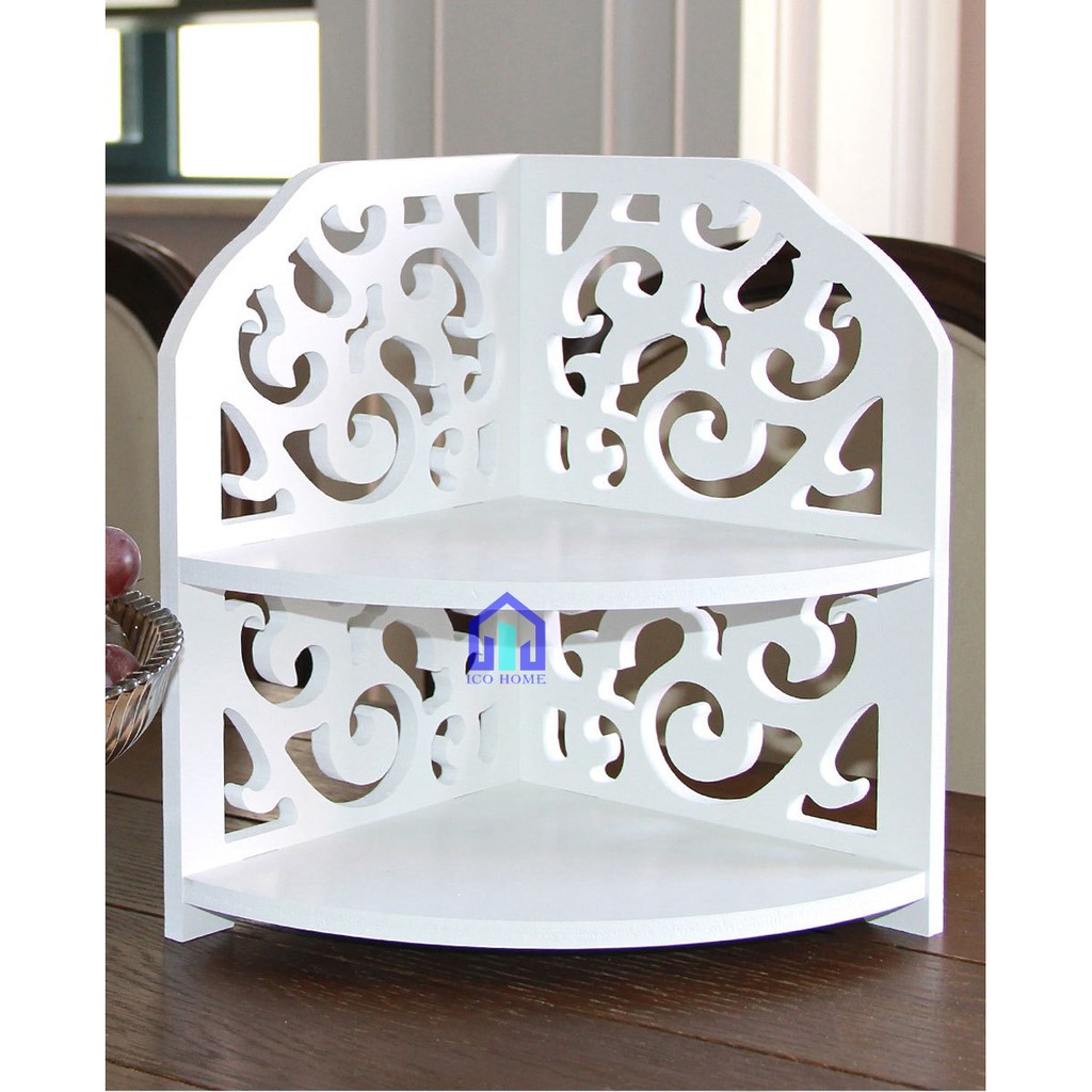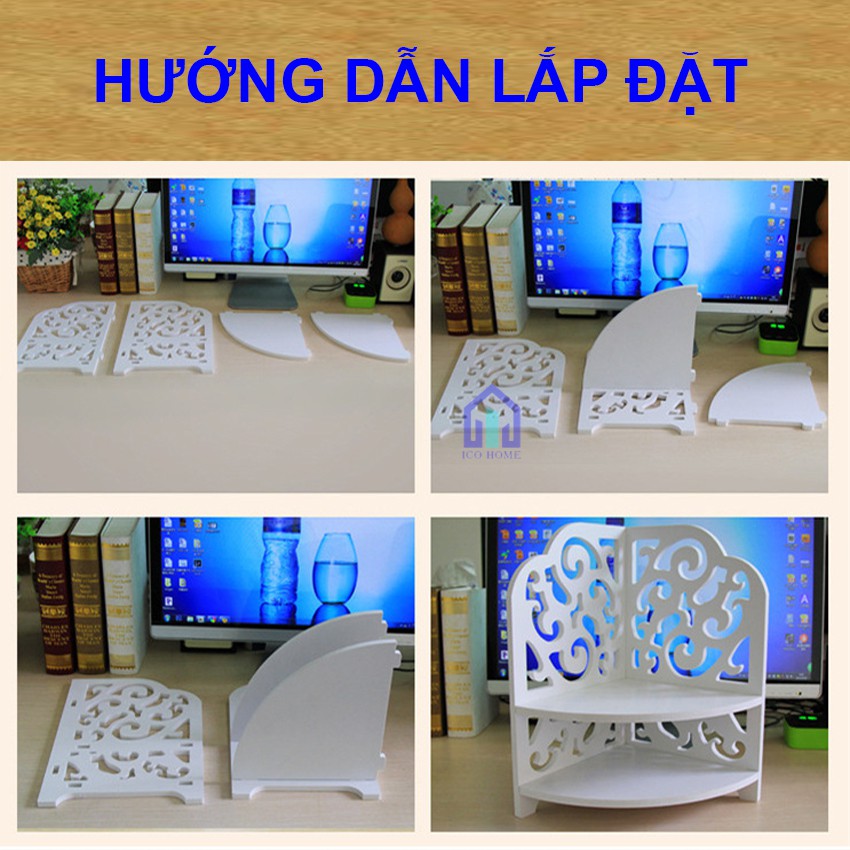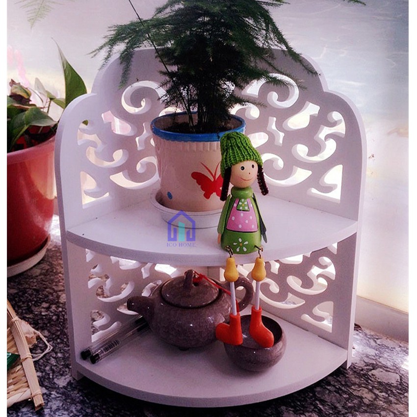 Kệ góc tường 2 tầng bằng gỗ đẹp phù hợp phòng khách nhà tắm, có 2 mẫu - Ico HomeBàn làm việc của bạn có quá nhiều đồ văn phòng phẩm, không gian bàn làm việc lại nhỏ. Bạn muốn sắp xếp gọn gàng, tăng hứng thú lúc làm việc thì kệ góc tường của Ico Home sẽ giải quyết giúp bạn.