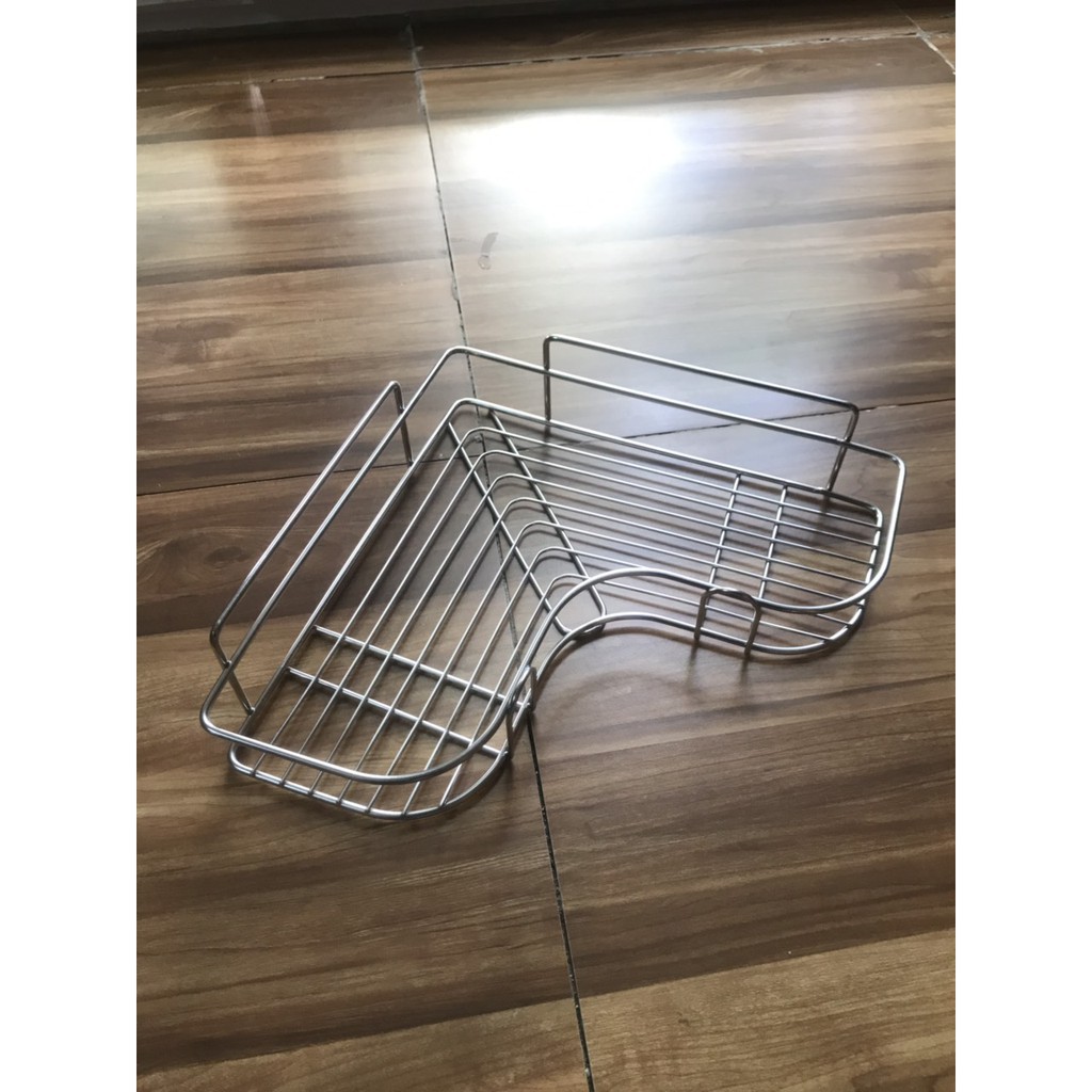 - Kết cấu: Kệ góc đan bằng các nan sắt với khoảng cách hợp lý giúp thoát nước và chịu lực tốt.