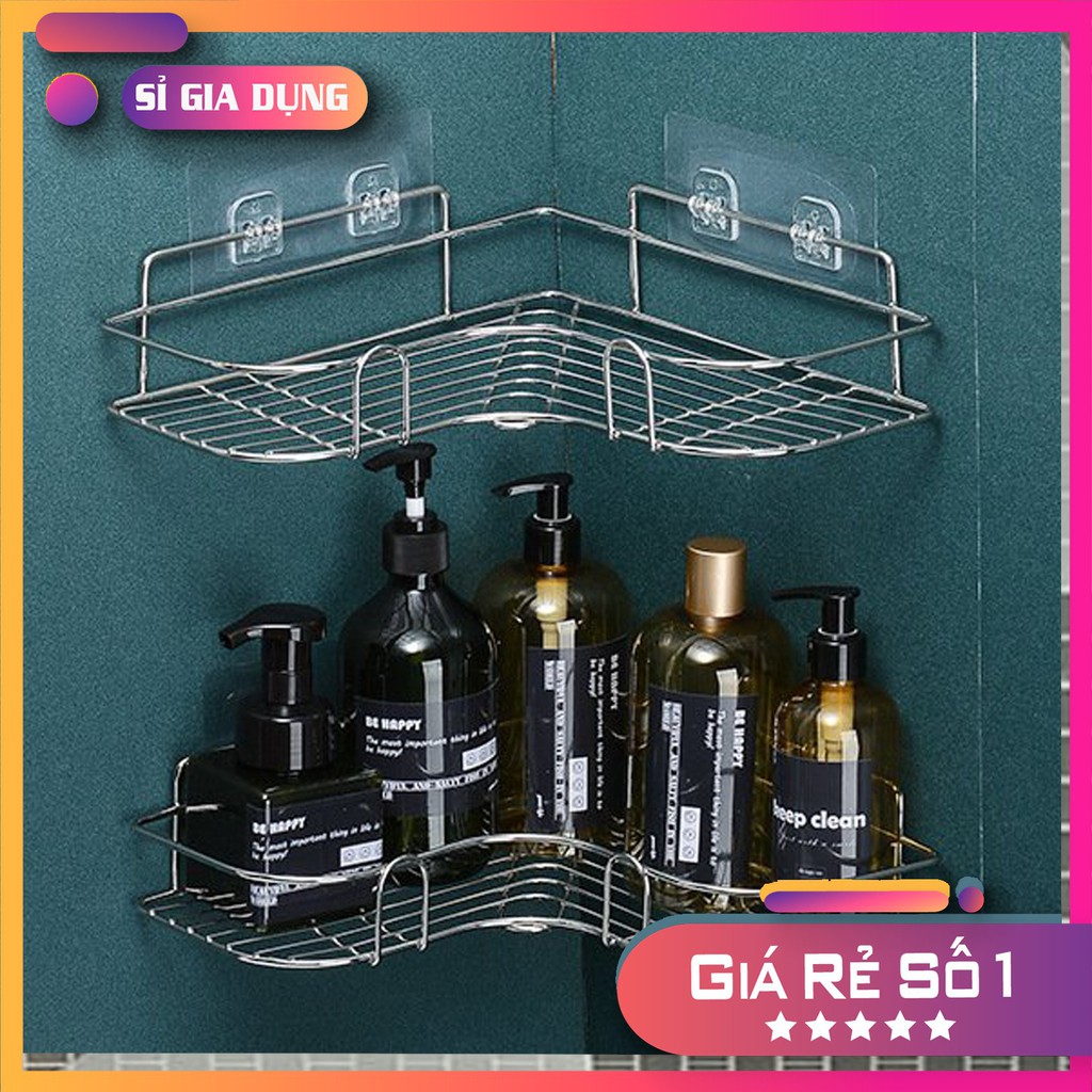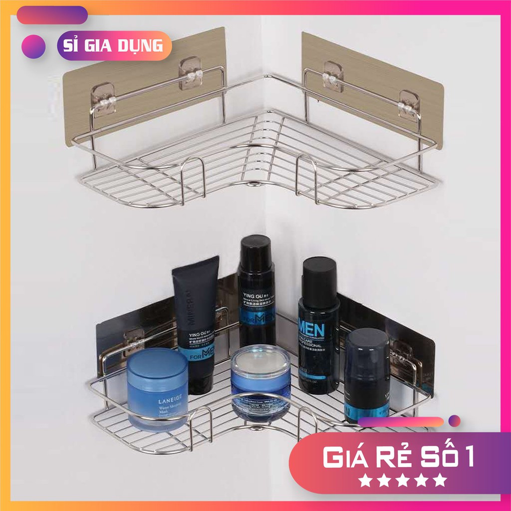 Kệ Góc Tường Inox 304 Không Gỉ, Kệ Nhà Tắm Dán Tường siêu chắc đựng Đồ Đa Năng
