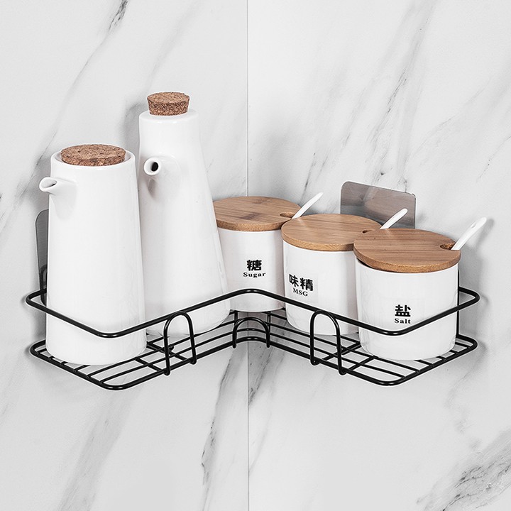 - Kệ góc, Giá đỡ treo dán góc tường dễ dàng tháo lắp nơi phòng tắm, nhà bếp, phòng ngủ đựng mỹ phẩm, gia vị.
