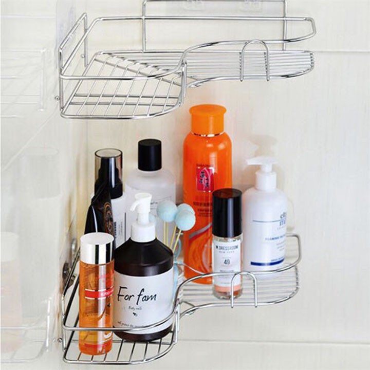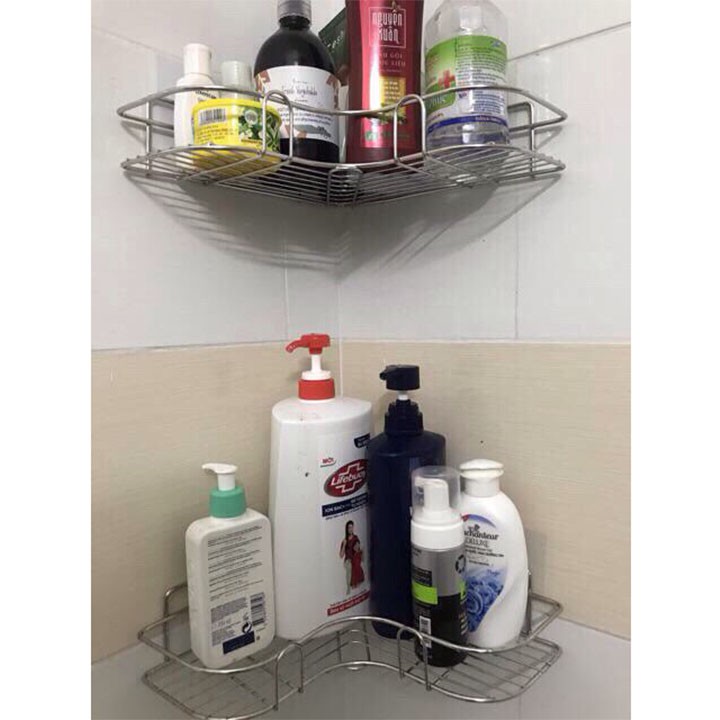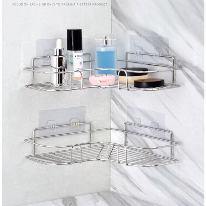 Kệ Góc Tường Inox Không Gỉ, Kệ Nhà Tắm Dán Tường Đựng Đồ Đa Năng