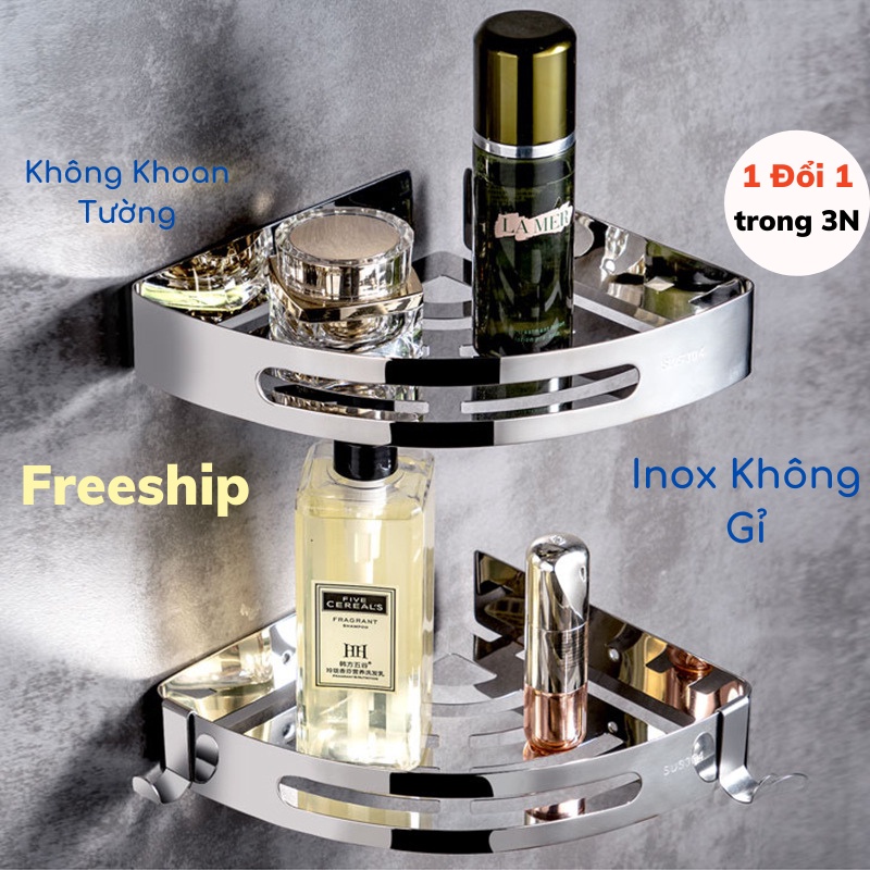 Nhà cửa & Đời sống > Đồ dùng phòng tắm > Kệ để đồ phòng tắm || Kệ Góc Tường, Kệ Để Đồ Nhà Tắm Dán Tường Bằng Inox Không Gỉ Đa NăngCòn hàng