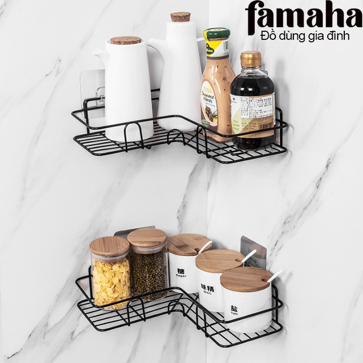 Nhà cửa & Đời sống > Đồ dùng phòng tắm > Kệ để đồ phòng tắm || Kệ góc tường kèm miếng dán siêu chắc để đồ nhà tắm bằng inox màu đen, kệ góc nhà tắm thông minh FAMAHACòn hàng