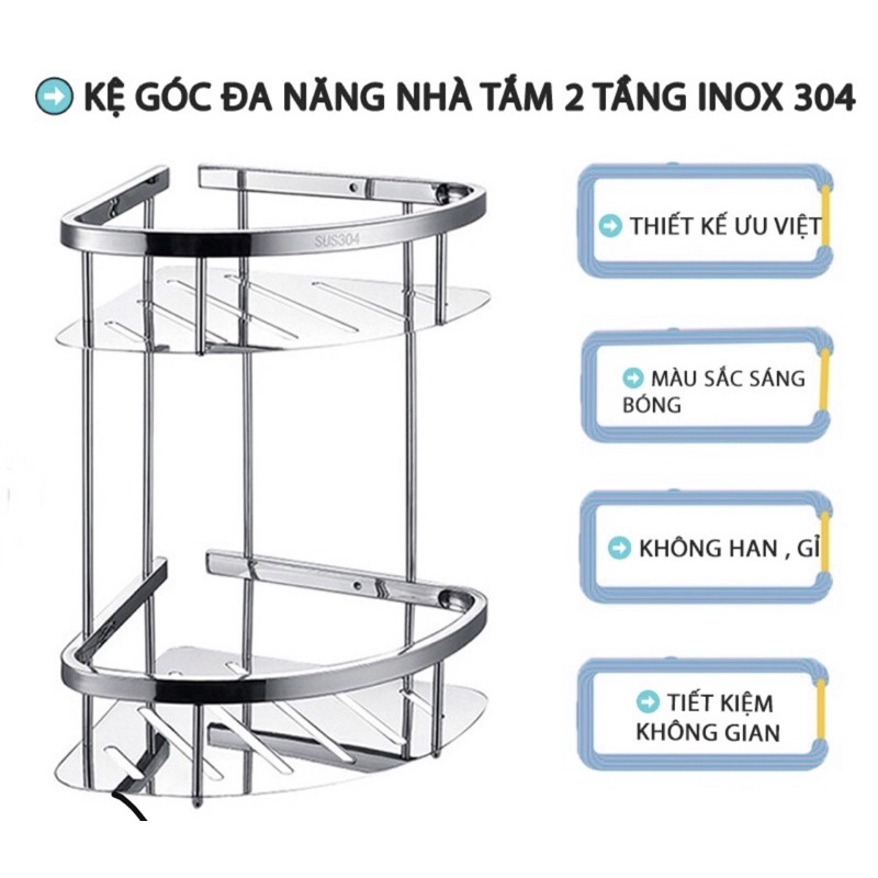 Kệ góc đa năng nhà tắm 2 tầng INOX 304 cao cấp không gỉ+Công dụng: đựng gia vị mắm muối trong nhà bếp, hay để sữa tắm, dầu gội trong nhà tắm