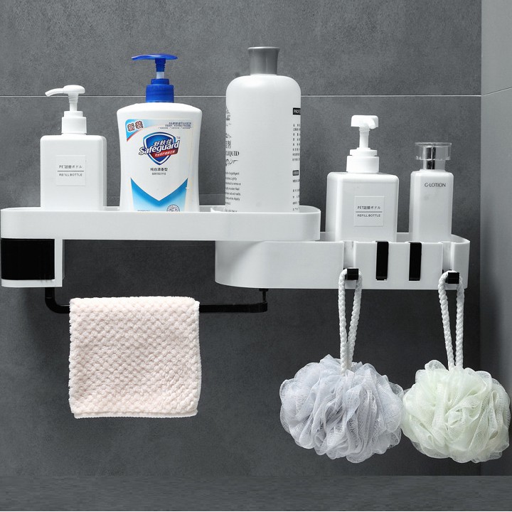 Kệ góc xoay 2 tầng để đồ nhà tắm treo tường đa chức năng có thể gấp gọn