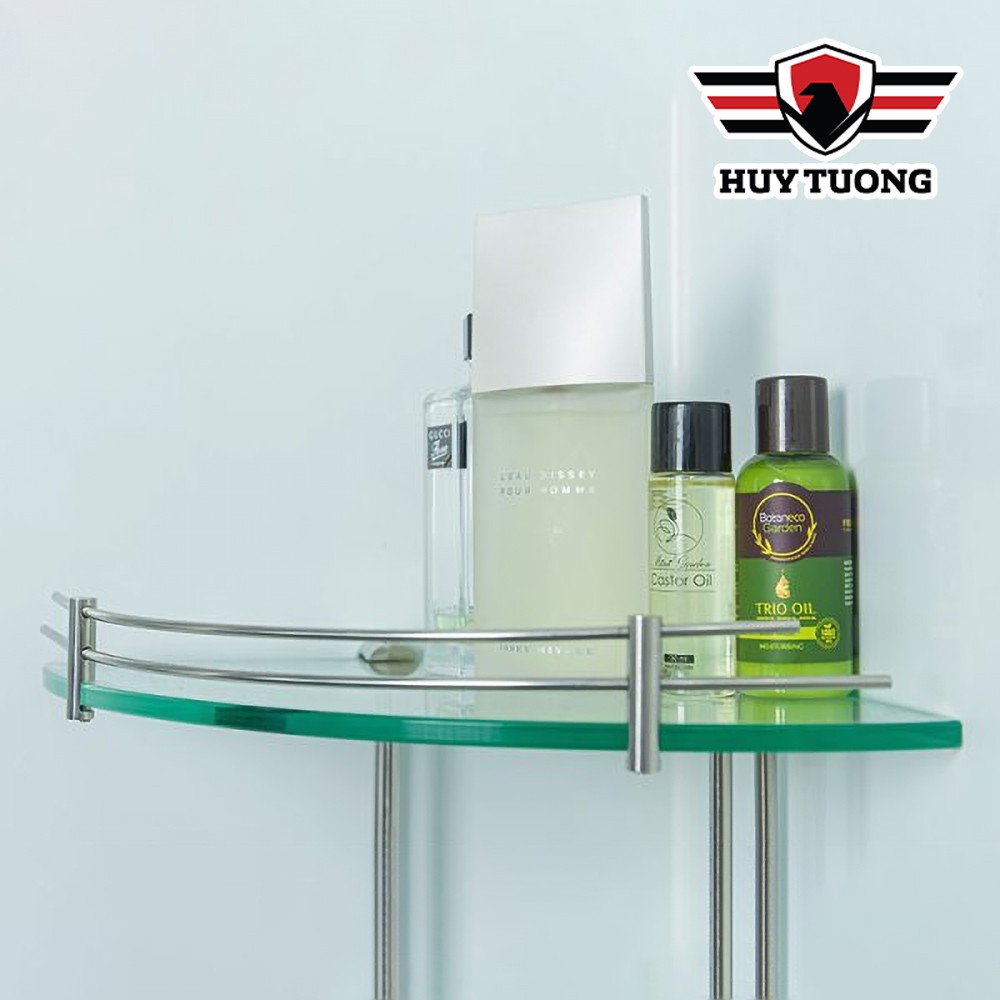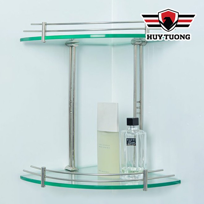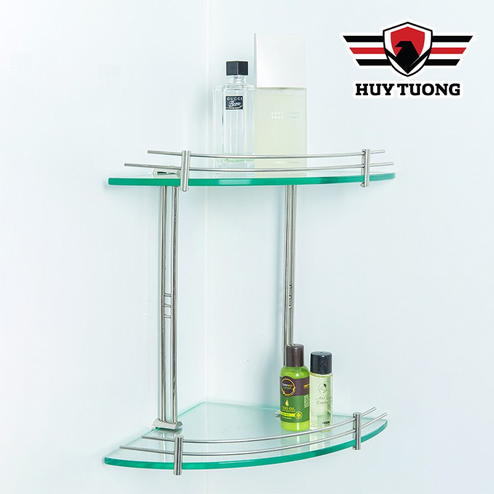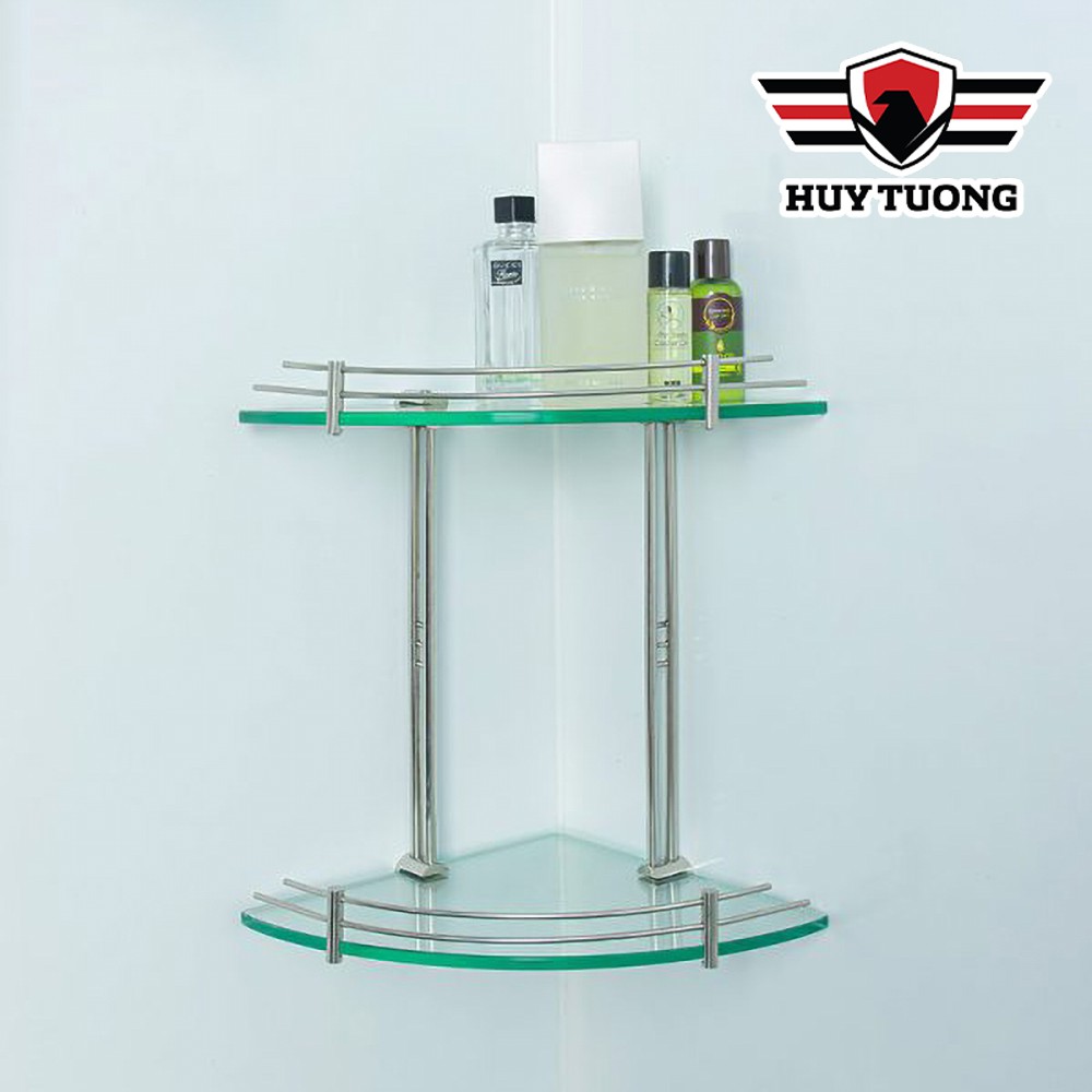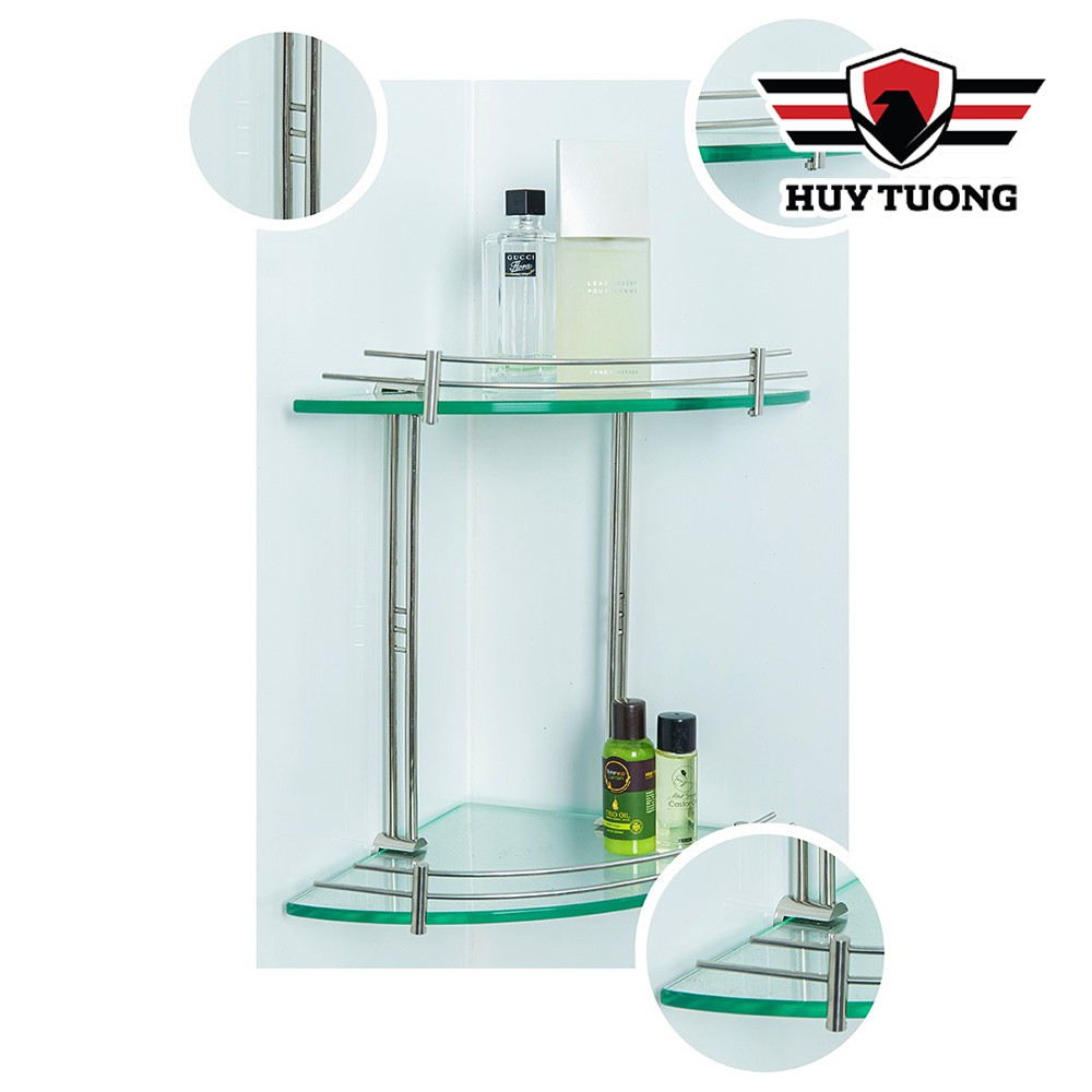 Kệ gương góc nhà tắm INOX CAO CẤP FREESHIP Kệ góc nhà tắm tam giác 2 tầng 25 x 25cm (kính cường lực 10mm)