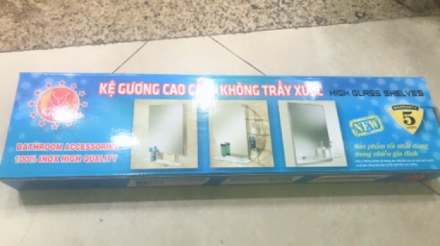 Mô tả sản phẩmSản phẩm được sử dụng trong phòng tắm,kệ gương đựng đồ bền chắc.Sản phẩm hàng Việt Nam chất lượng cao