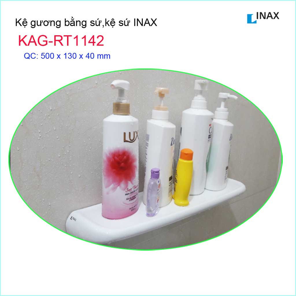 Ưu điểm: Kệ gương phòng tắm bằng sứ, kệ sứ Inax KAG-RT1142 sang trọng, màu trắng hiện đại, chất liệu sứ dễ vệ sinh, không bám bẩn trong quá trình sử dụng, kệ bắt trực tiếp vào tường nên luôn chắc chắn, sử dụng bền bỉ theo thời gian ...