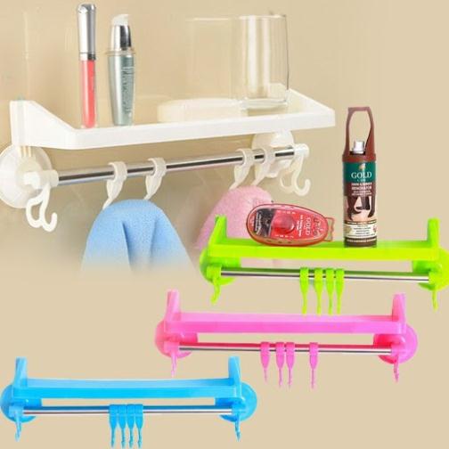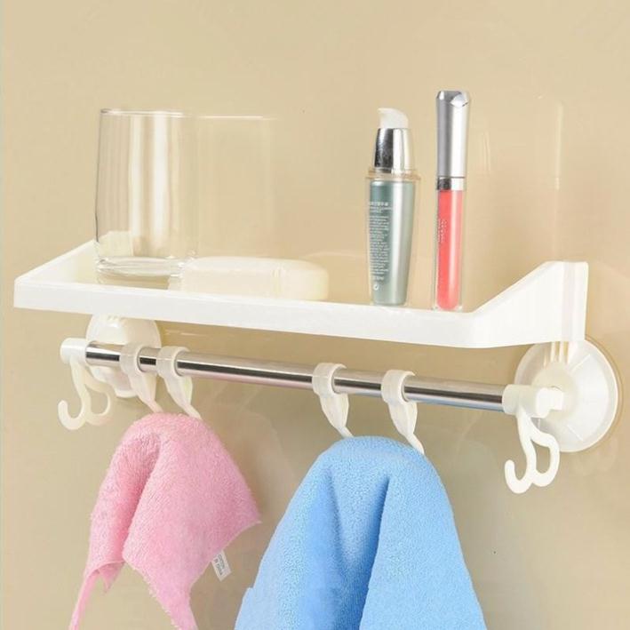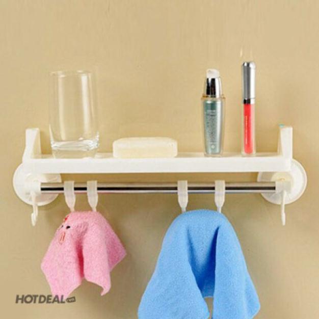 Kệ Hít Treo Đồ Nhà Tắm-Kệ treo gọn gàng nhà tắm thiết kế thanh ngang với nhiều móc treo tiện dụng là sản phẩm tiện dụng cho nhà tắm, nhà bếp.
