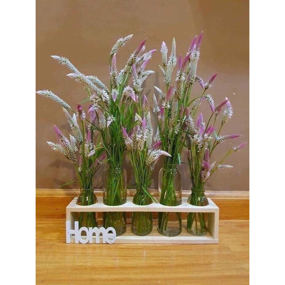 🍒🌺🌺🌺Kệ hoa Home gồm (kệ gỗ và 5 lọ thủy tinh)🍀🍀🍀Set 5 lọ thủy tinh cắm hoa kèm kệ gỗ Home – Không mất quá nhiều công cầu kỳ và cũng không cần quá khéo tay, các mẹ có thể cắm bất kỳ cây hay hoa nào, đều dễ dàng có 1 không gian nhỏ xanh mướt hay đầy mầu sắc cho căn phòng của mình.