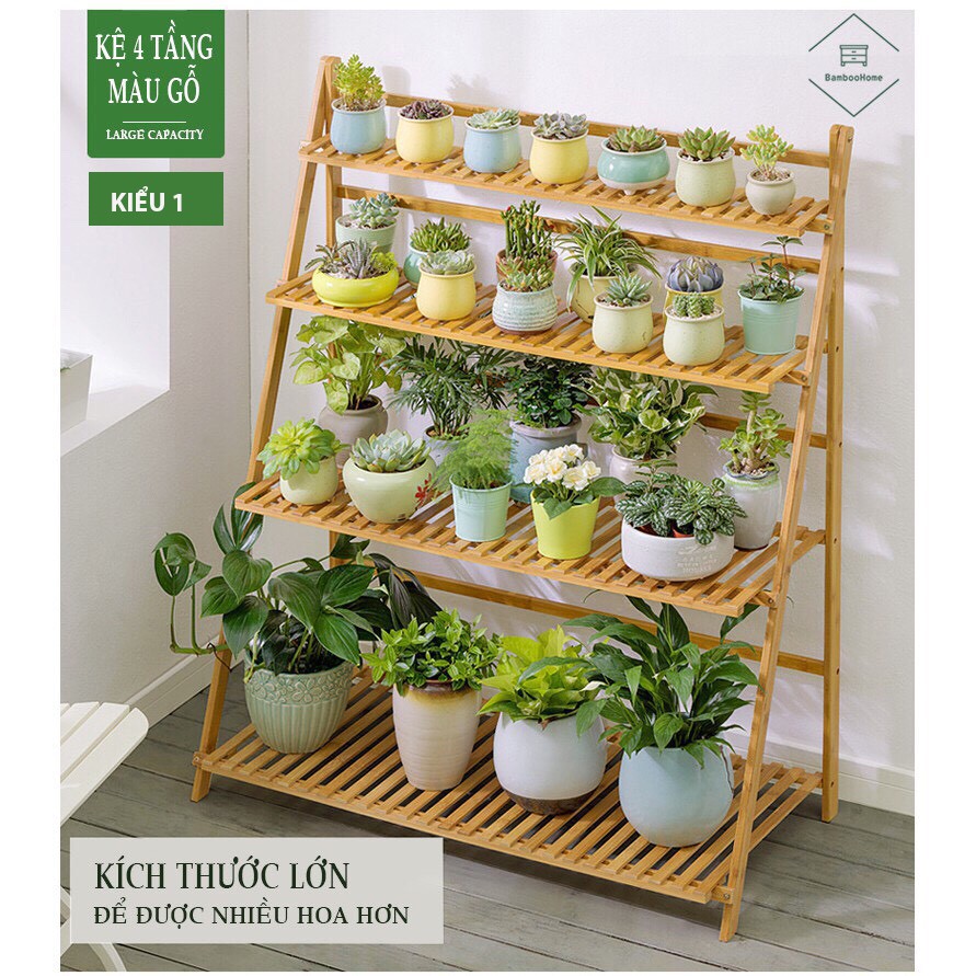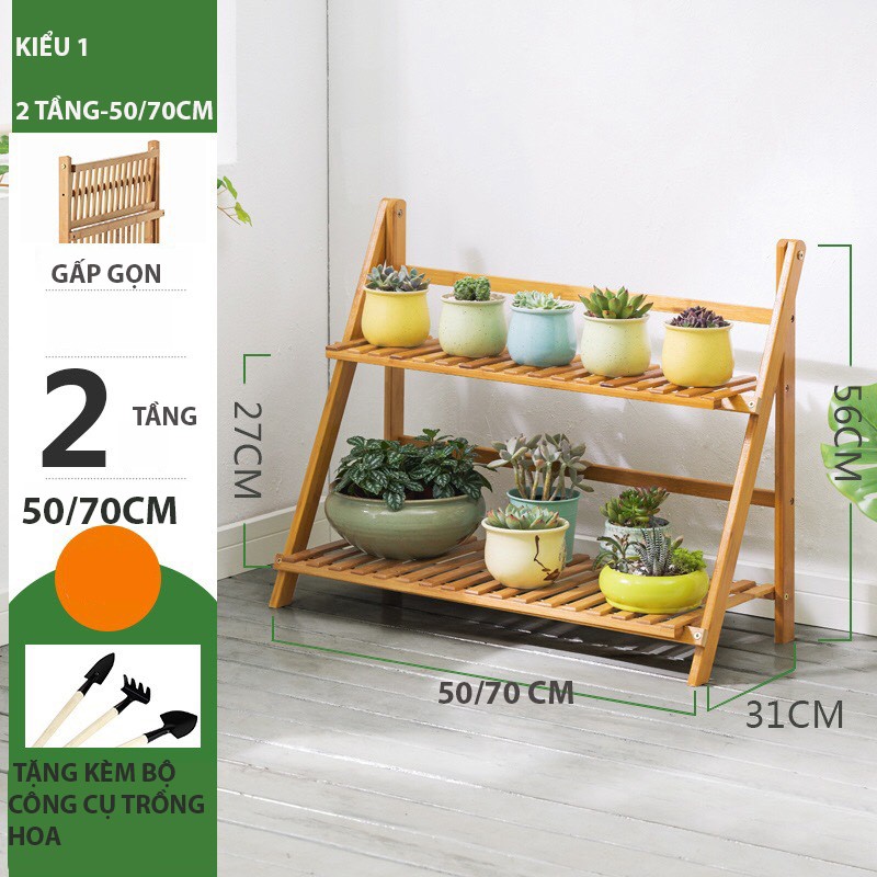 Kệ hoa cây cảnh gỗ tre gấp gọn đa năng nhiều tầng 2 3 4 tầng để trong nhà ngoài trời sân vườn ban công tiện lợi