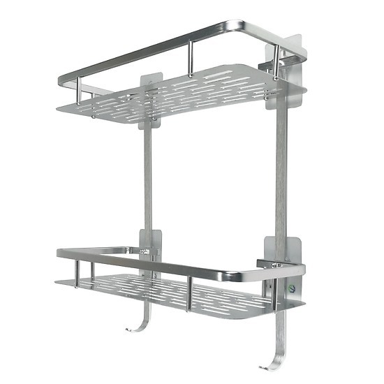 Giá treo nhà tắm 2 tầng hợp kim nhôm có thiết kế hiện đại & đa chức năng với kệ để đồ 2 tầng, 2 móc treo tiện lợi giúp bạn sắp xếp các vật dụng trong phòng tắm hay nhà bếp một cách gọn gàng, ngăn nắp, hợp vệ sinh lại không chiếm diện tích.
