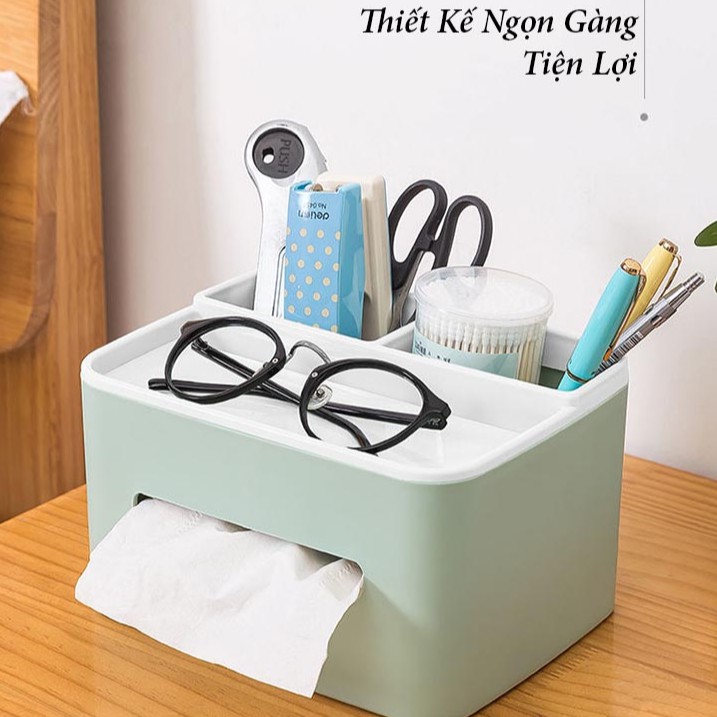 Hộp Đựng Giấy Vệ Sinh Để Bàn Có Ngăn Và Kệ Để ĐồBàn học và bàn làm việc thường rất hay bị bừa bộn các đồ dùng như bút, gôm, ghim bấm, điện thoại...Đặc biệt là đối với một số bạn có thói quen để mỗi thứ một nơi thì chắc chắn sẽ thường bị lạc đồ nữa. Bàn làm việc không gọn gàng sẽ có thể làm giảm hiệu suất làm việc của bạn và tìm kiếm đồ thất lạc thì chắc chắn sẽ khó chịu và mất thời gian. Vì thế, hộp khăn giấy này có thể coi là một trong những ứng cử viên sáng giá giải quyết các vấn đề trên. Vừa để giấy, kết hợp để đồ