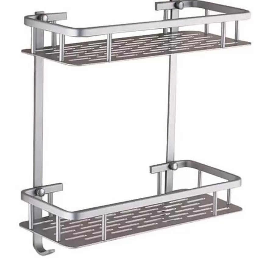 Kệ Inox Nhà Tắm Hình Chữ Nhật 2 Tầng Đa Năng (36 x 31 cm) dùng để đựng đồ dùng nhà tắm như xà phòng, nước, đồ dùng cho phòng ngủ hoặc cả nhà bếp.Thiết kế 2 tầng cùng 2 móc treo tiện lợi giúp bạn treo được nhiều đồ hơn.