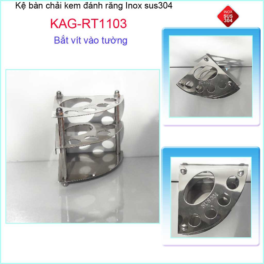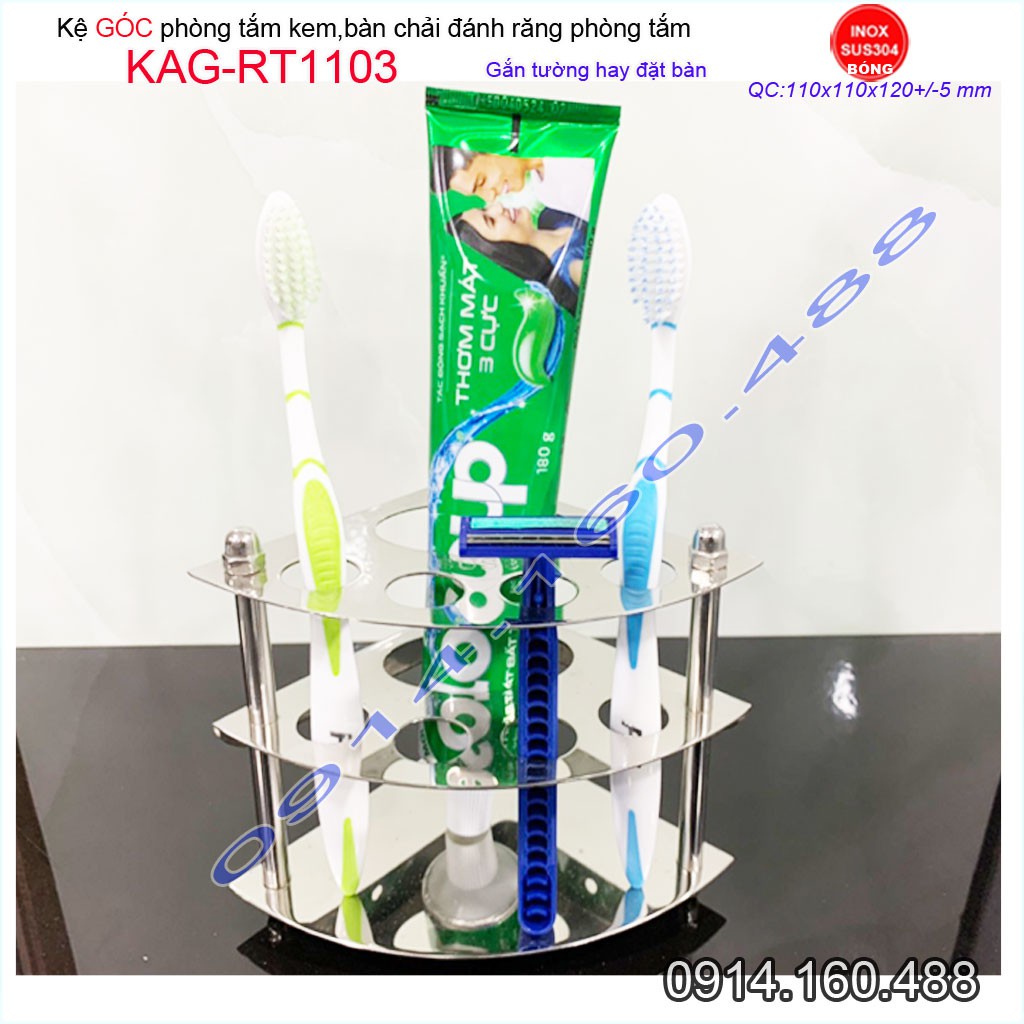 Kệ inox 304 để kem đánh răng bàn chải KAG-RT1103, giá để cây đánh răng sử dụng tiện lợi siêu bền lắp góc