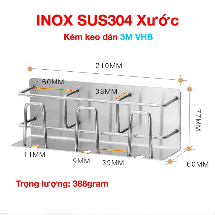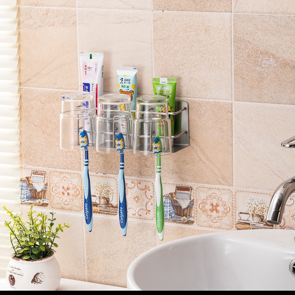 Nhà Cửa & Đời Sống > Đồ dùng phòng tắm > Kệ để đồ phòng tắm || Kệ Inox 304 đựng bàn chải, kem đánh răng, treo ly súc miệng - 3 ngăn kèm keo dán tường gạch men - HOBBY KBCD4Còn hàng