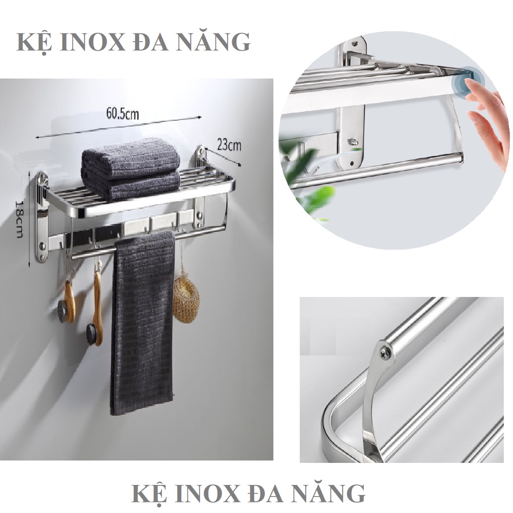 Kệ inox cao cấp treo khăn tắm đã năng - kệ inox siêu bền mẫu đẹp kích thước 60x24x17cm - Kệ treo khăn nhà tắm