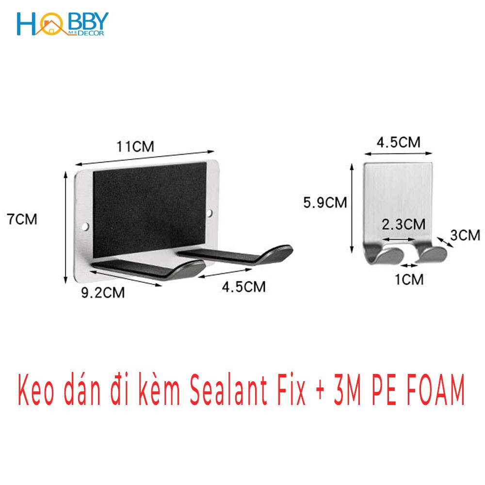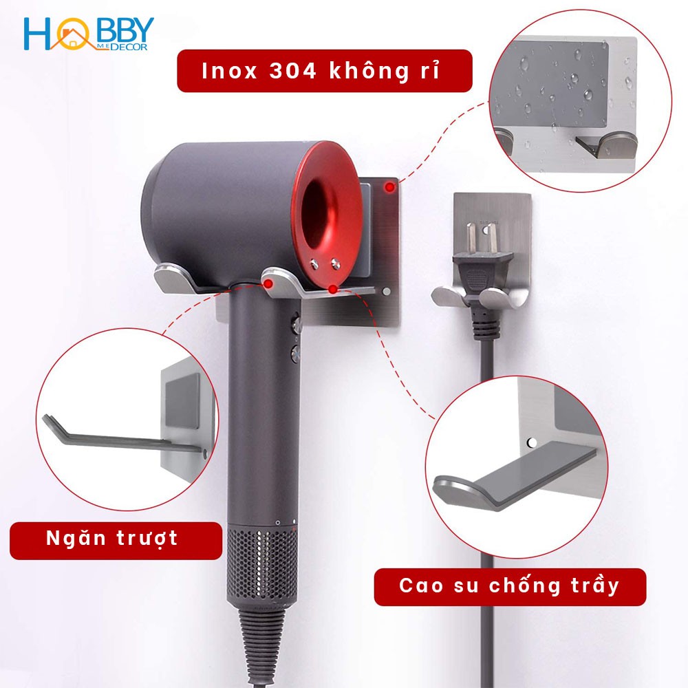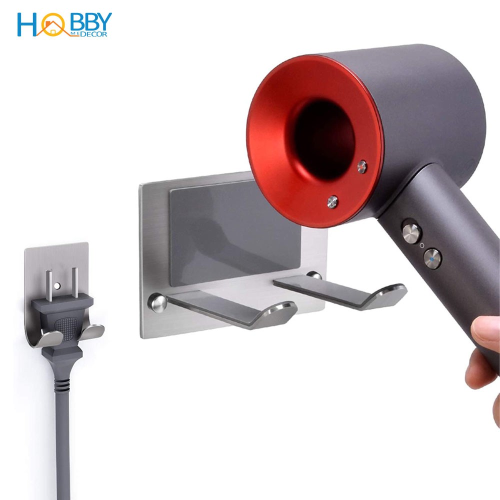 Giá treo máy sấy tóc và phích cắm HOBBY Home Decor MS3PC dán tường gạch men - chuẩn Inox 304 và kèm keo dán