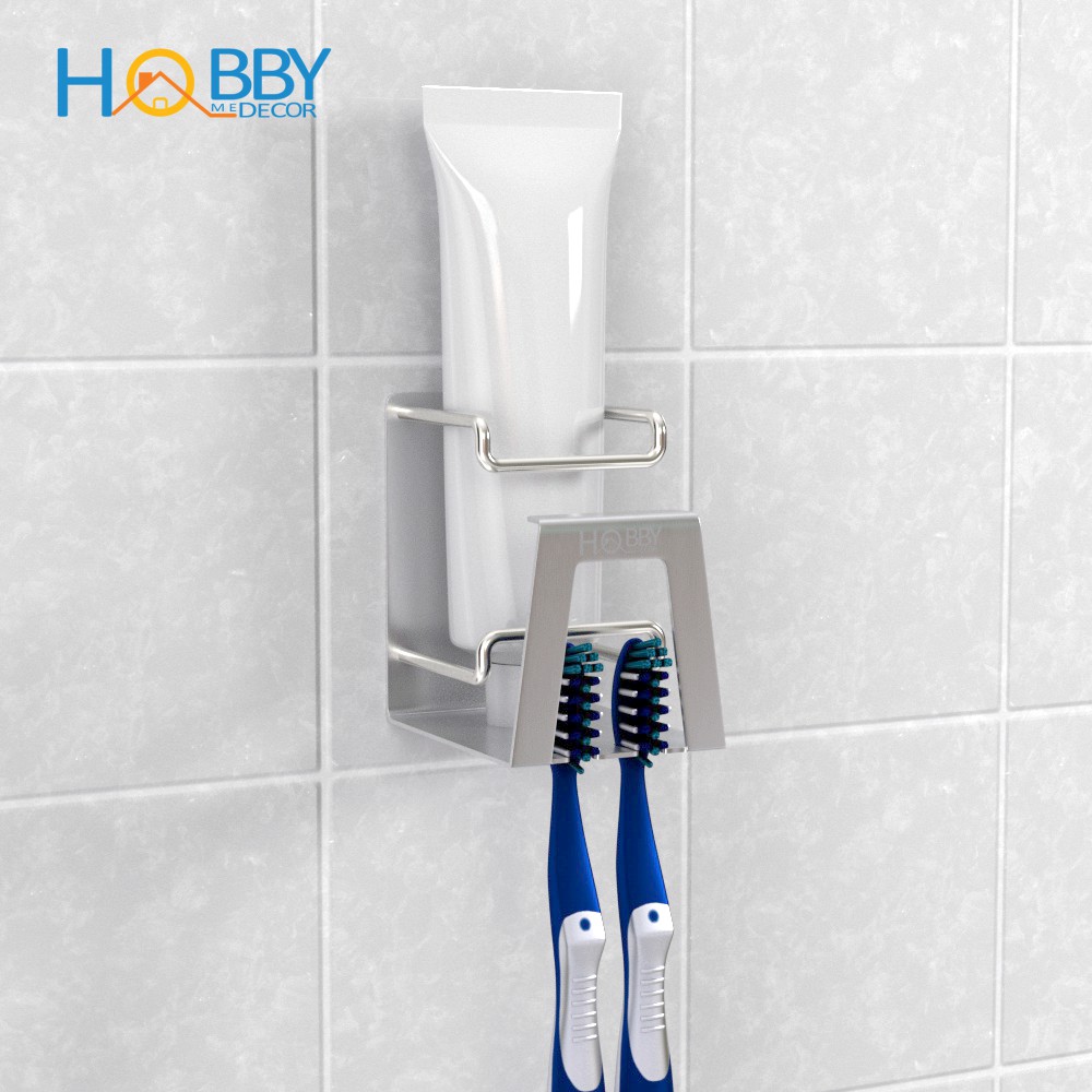 Kệ đựng bàn chải kem đánh răng HOBBY Home Decor KBC31 Inox 304 dán tường - kèm keo dán