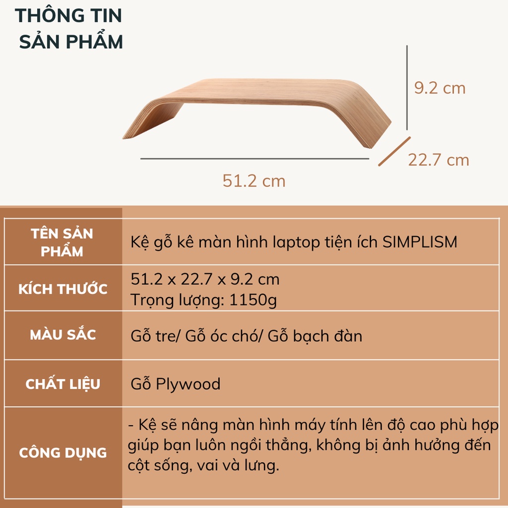 THÔNG TIN SẢN PHẨMKệ kê màn hình máy tính laptop gỗ Plywood cải thiện dáng ngồi DECOSA