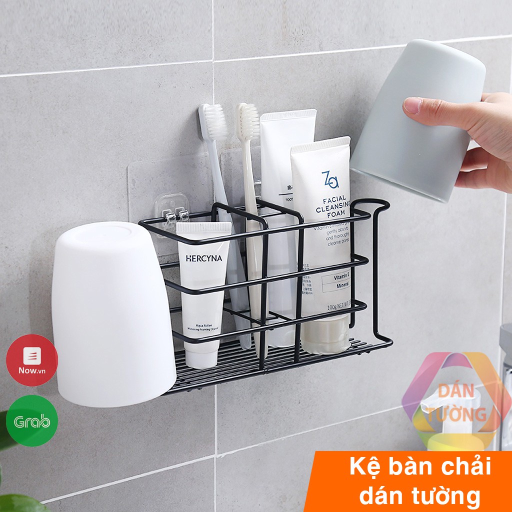 Kệ kem đánh răng, giá kệ để treo bàn chải đánh răng kim loại dán tường nhà tắm cao cấp - K125