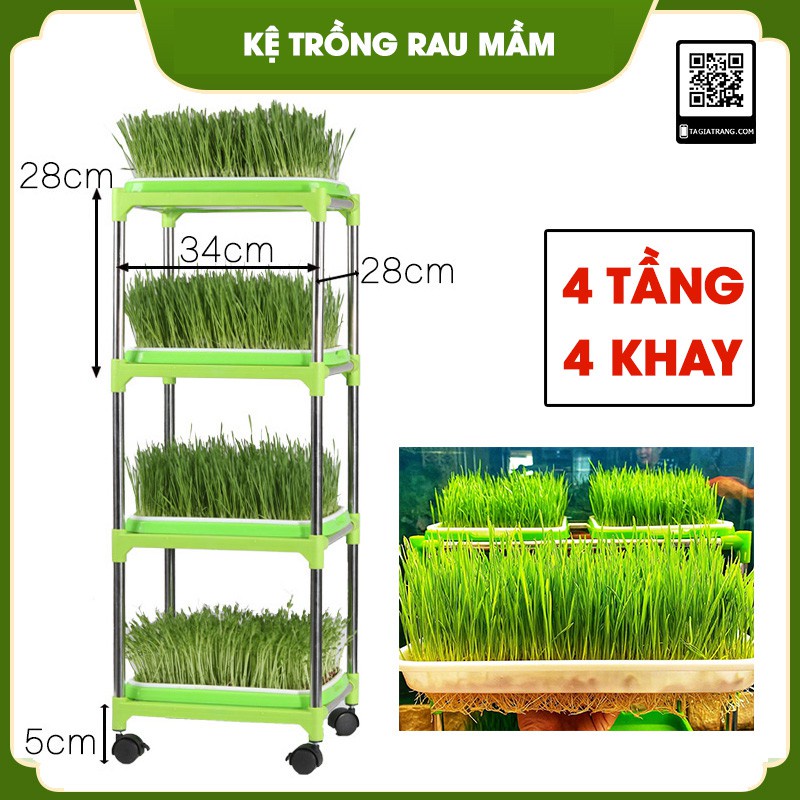 Bộ Kệ khay trồng rau mầm thủy canh 4 tầng 4 khay