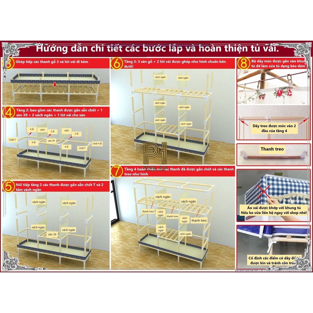 - Khách hàng có thể TUỲ CHỌN KÍCH THƯỚC + TUỲ CHỌN MÀU SẮC + TUỲ CHỌN KIỂU DÁNG + TUỲ CHỌN CÁCH LẮP = Tủ Vải Khung Gỗ Bùi An (Hàng Việt Nam).