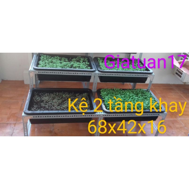 Giới thiệu Kệ khung sắt v lỗ bậc thang trồng rau 2 tầng mỗi tầng 2 khay 68x42x15 cm, 67x43x15 cm