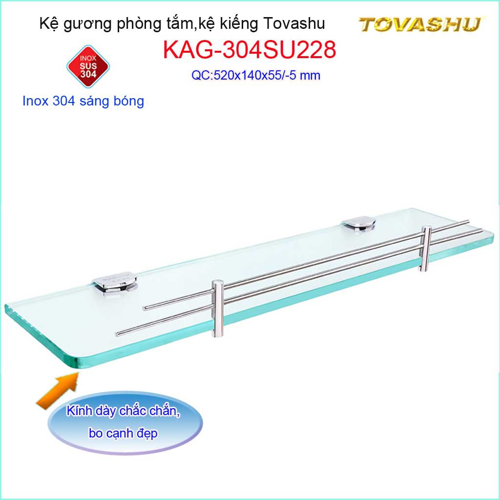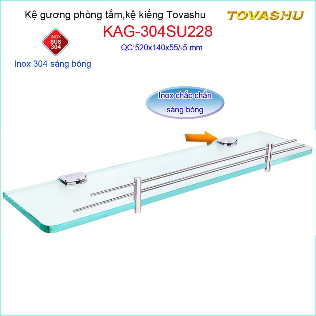 Kệ kiếng cường lực Tovashu KAG-304SU228, kệ gương phòng tắm Inox Nhật cao cấp