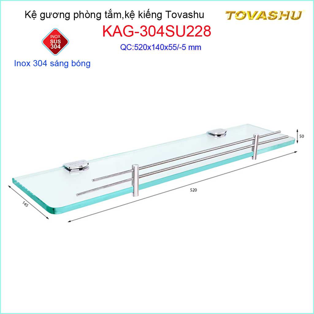 Kệ kiếng cường lực Tovashu KAG-304SU228, kệ gương phòng tắm Inox Nhật cao cấpKích thước dài 520mmx cao rộng 140mm x cao 55 mm