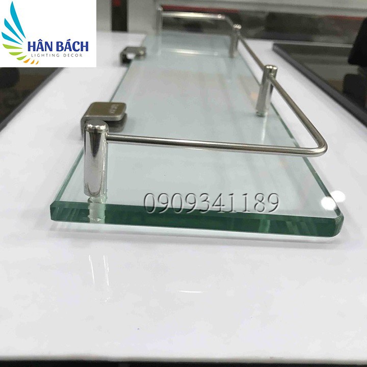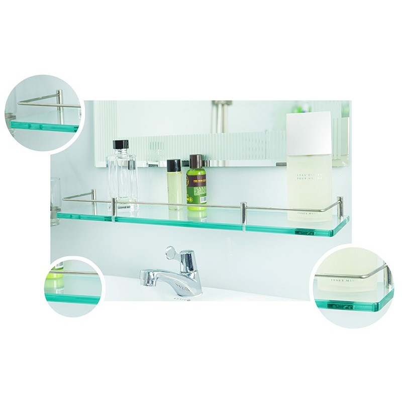 - Kệ kính với thanh rào inox 304 rất sang trọng, giúp để đồ đạc gọn gàng mà rất dễ lau chùi