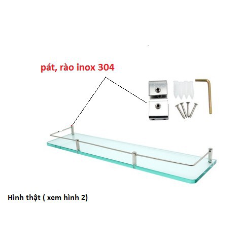- Thanh rào bao quanh và cả đế pas đỡ kệ kiếng (dùng gắn kệ vào tường) được làm bằng chất liệu inox 304 (SUS 304 Bóng) cao cấp, chống gỉ sét, không bị ăn mòn, luôn sáng bóng