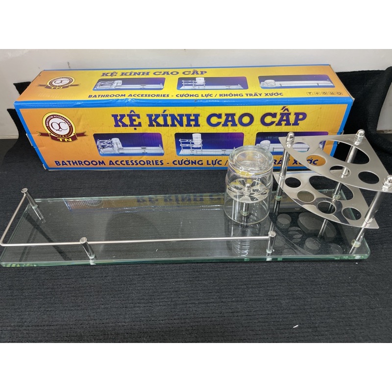 Nhà cửa & Đời sống > Đồ dùng phòng tắm > Kệ đựng bàn chải, kệ nhả kem đánh răng || Kệ kiếng phòng tắm đa năng inox304, kệ thẳng 50cm có chỗ cắm bàn chải( tặng 1 ly)Còn hàng