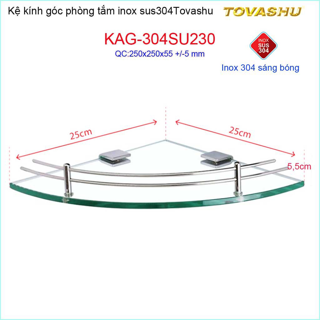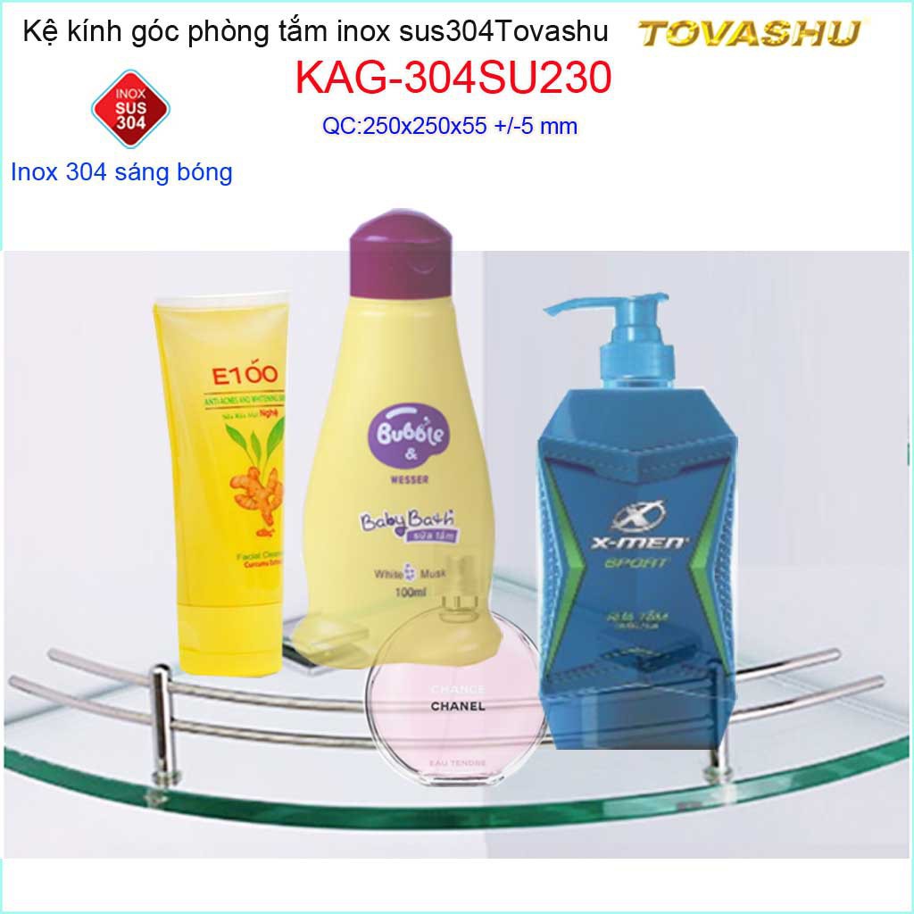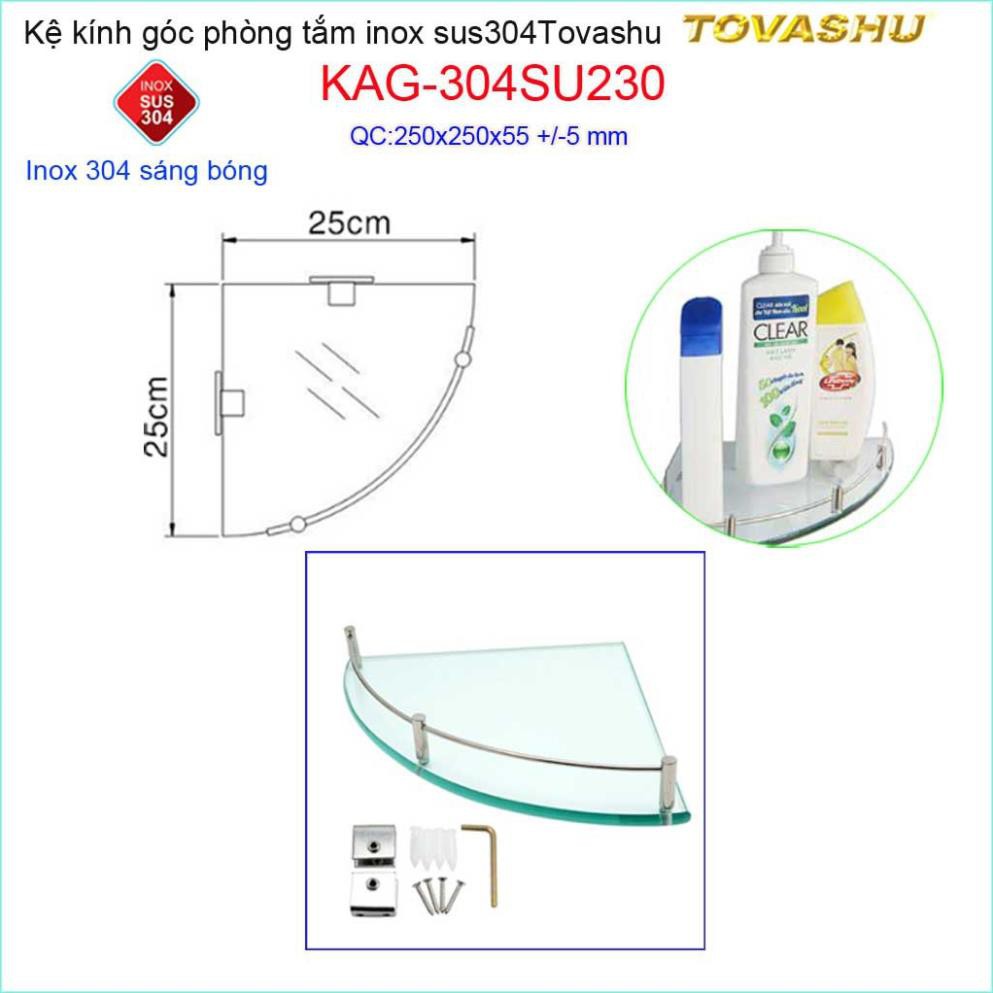 Kệ kiếng phòng tắm, kệ kiếng góc cao cấp Tovashu KAG-304SU230Kích thước dài 250mm x rộng 250mmx cao 55mm