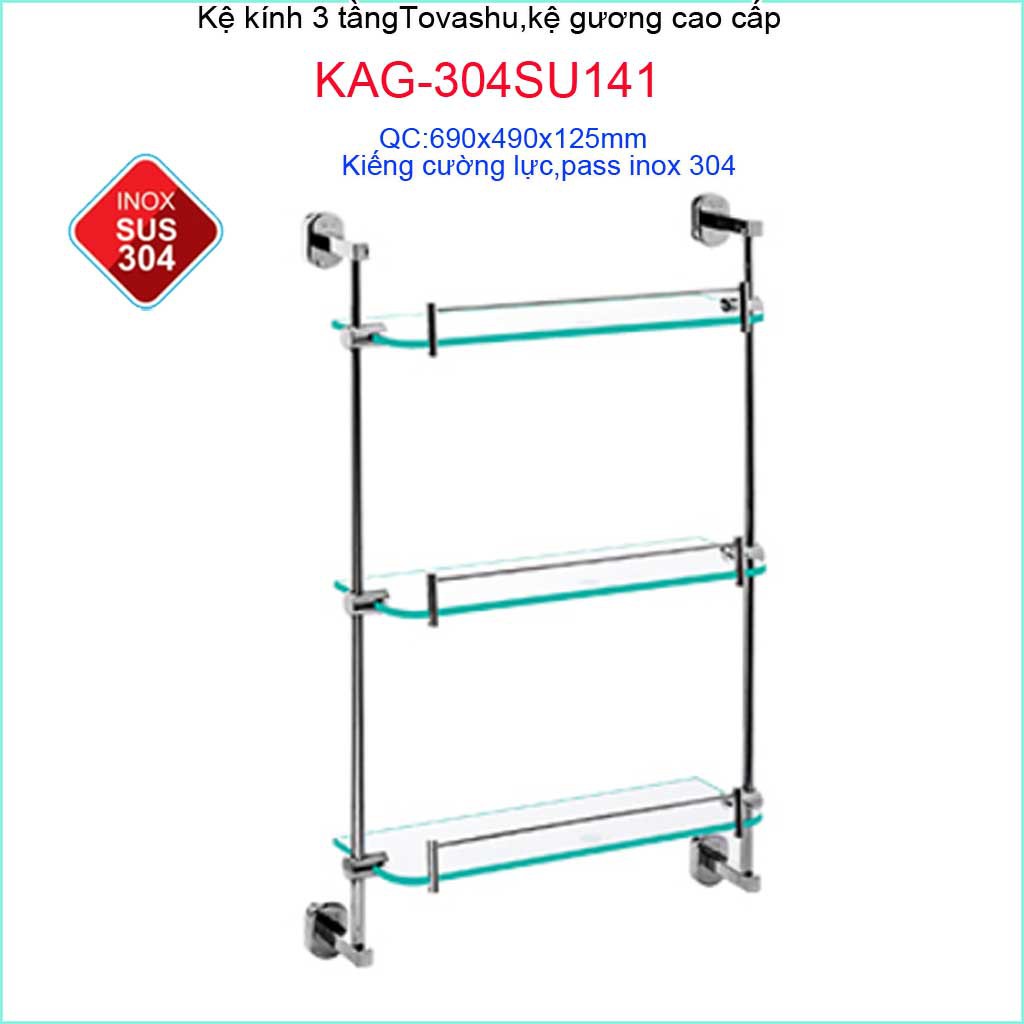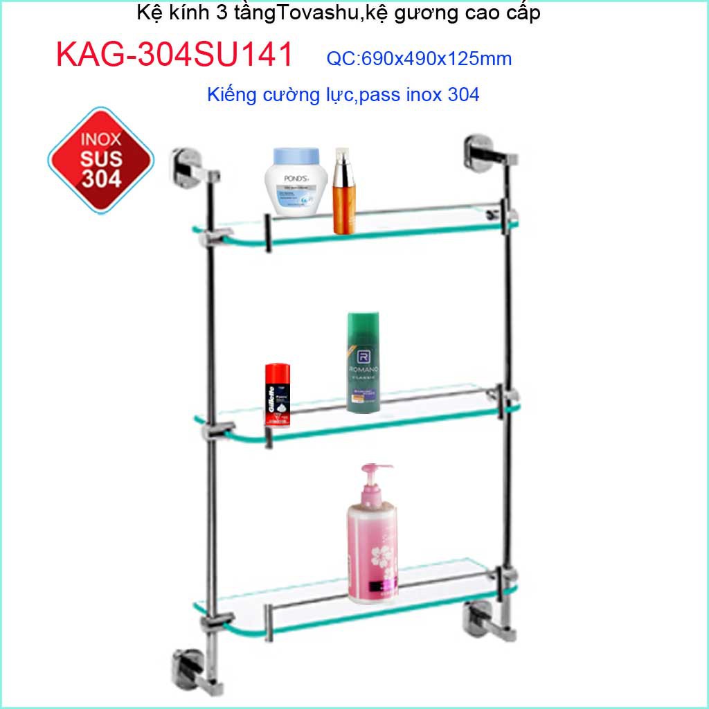 Kệ kiếng Tovashu KAG-304SU141, kệ xà phòng 3 tầng phòng tắm cao cấp Inox Nhật BảnKích thước dài 490mmx rộng 125mm x cao 690 mm