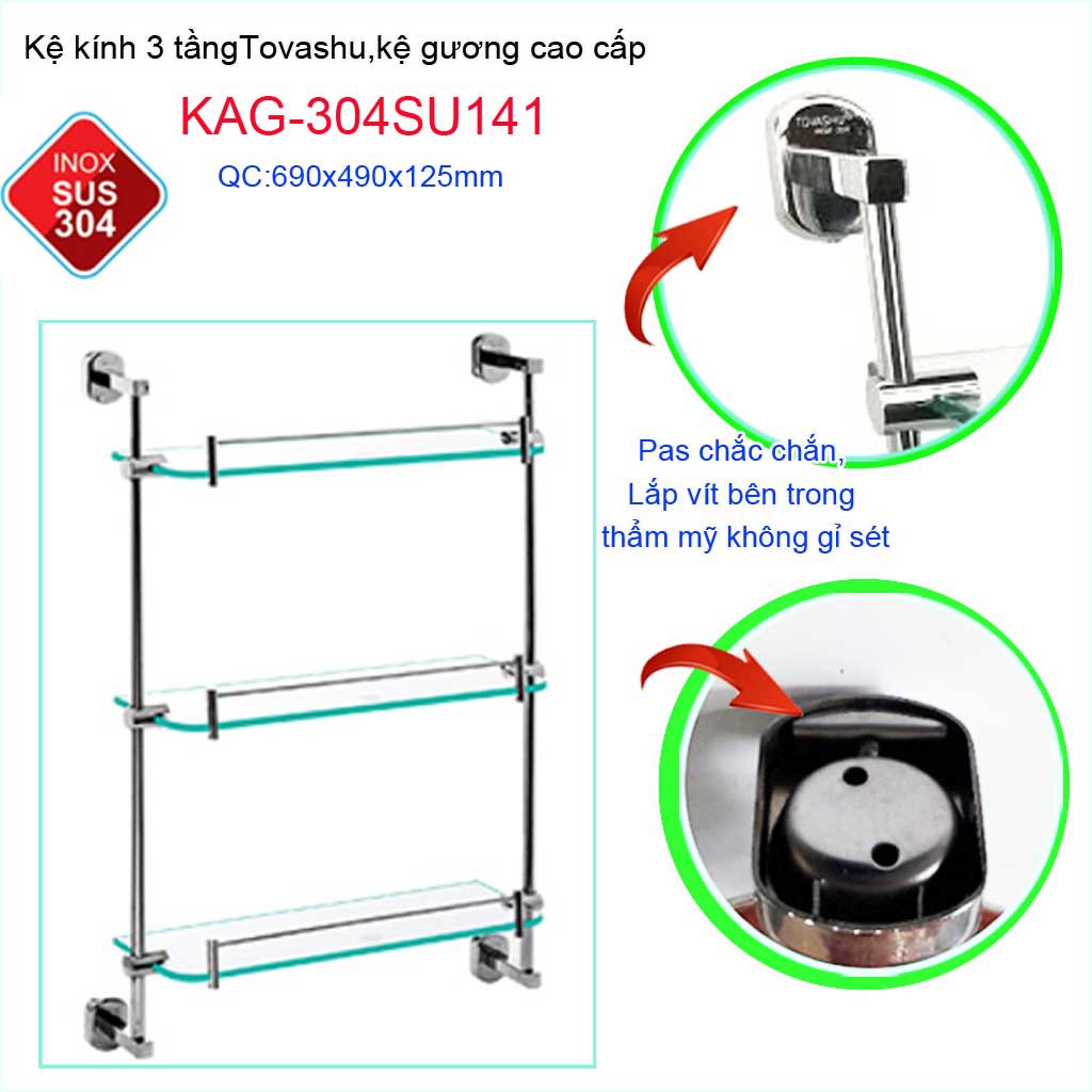 Kệ kiếng Tovashu KAG-304SU141, kệ xà phòng 3 tầng phòng tắm cao cấp Inox Nhật Bản