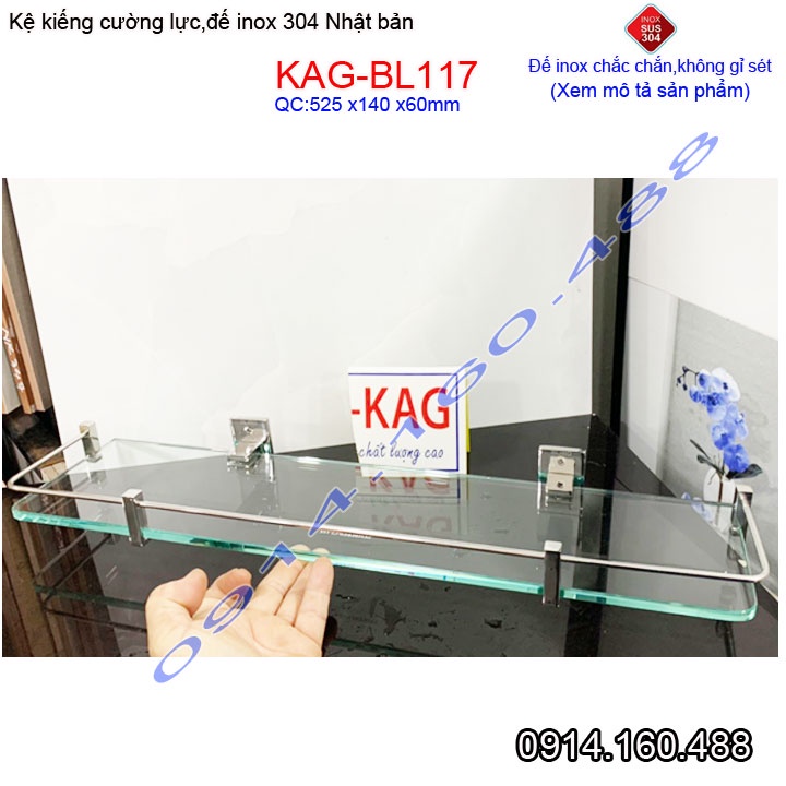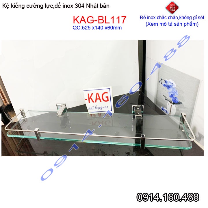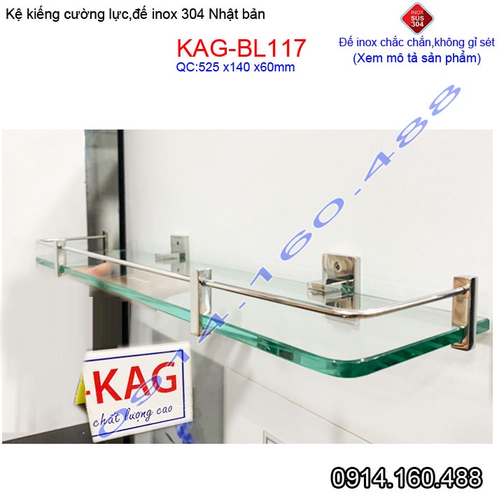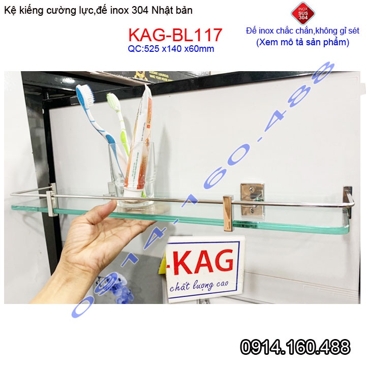 Kệ kính cường lực Inox 304 Nhật Bản KAG-BL117, Kệ gương phòng tắm kiếng 10mm thiết kế đẹp tiện dụng siêu bền