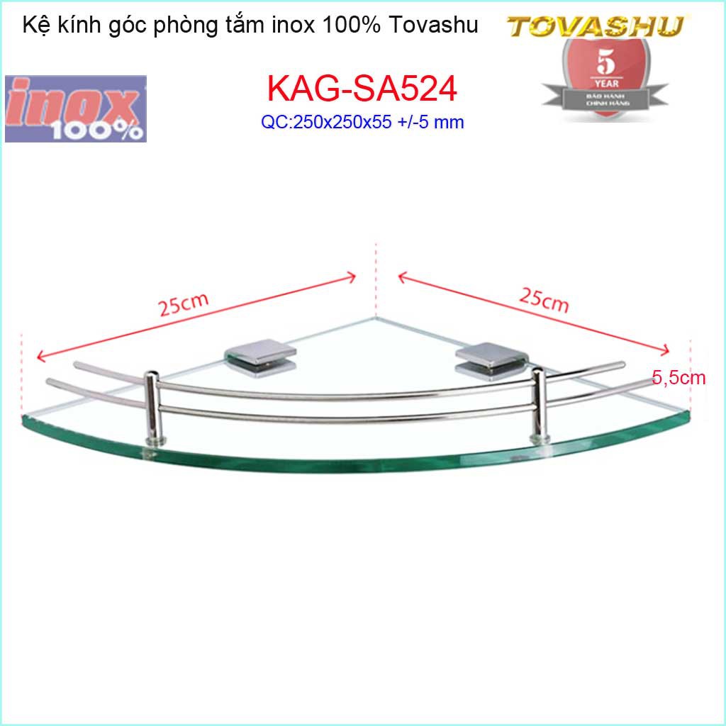 Kệ kính góc nhà tắm, kệ kiếng phòng tắm Tovashu KAG-SA524Chất liệu: Kệ kính góc nhà tắm, kệ kiếng phòng tắm Tovashu KAG-SA524 sản xuất bởi chất liệu Stainless steel cao cấp Nhật Bản, kính dày 10ly khó bể vỡ,
