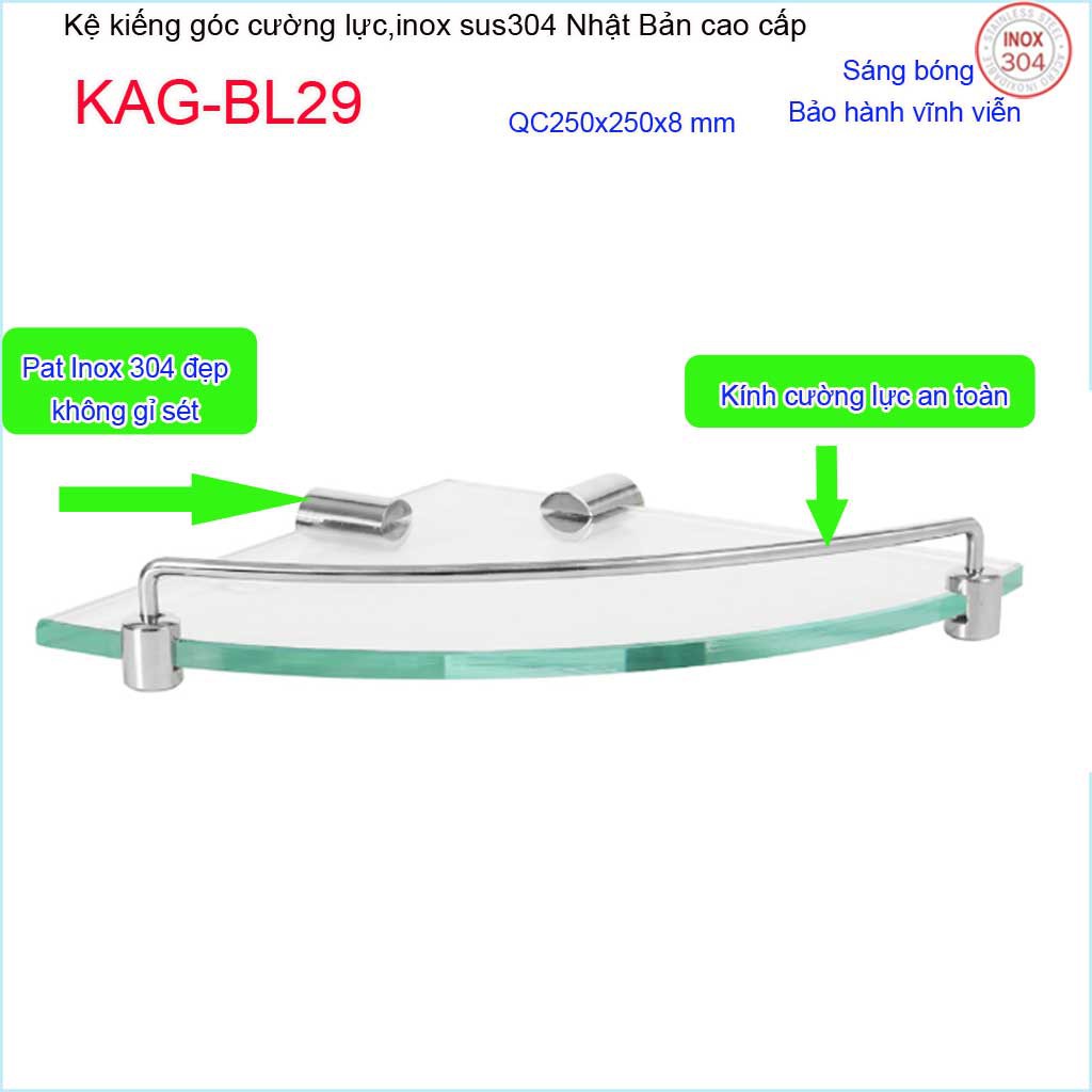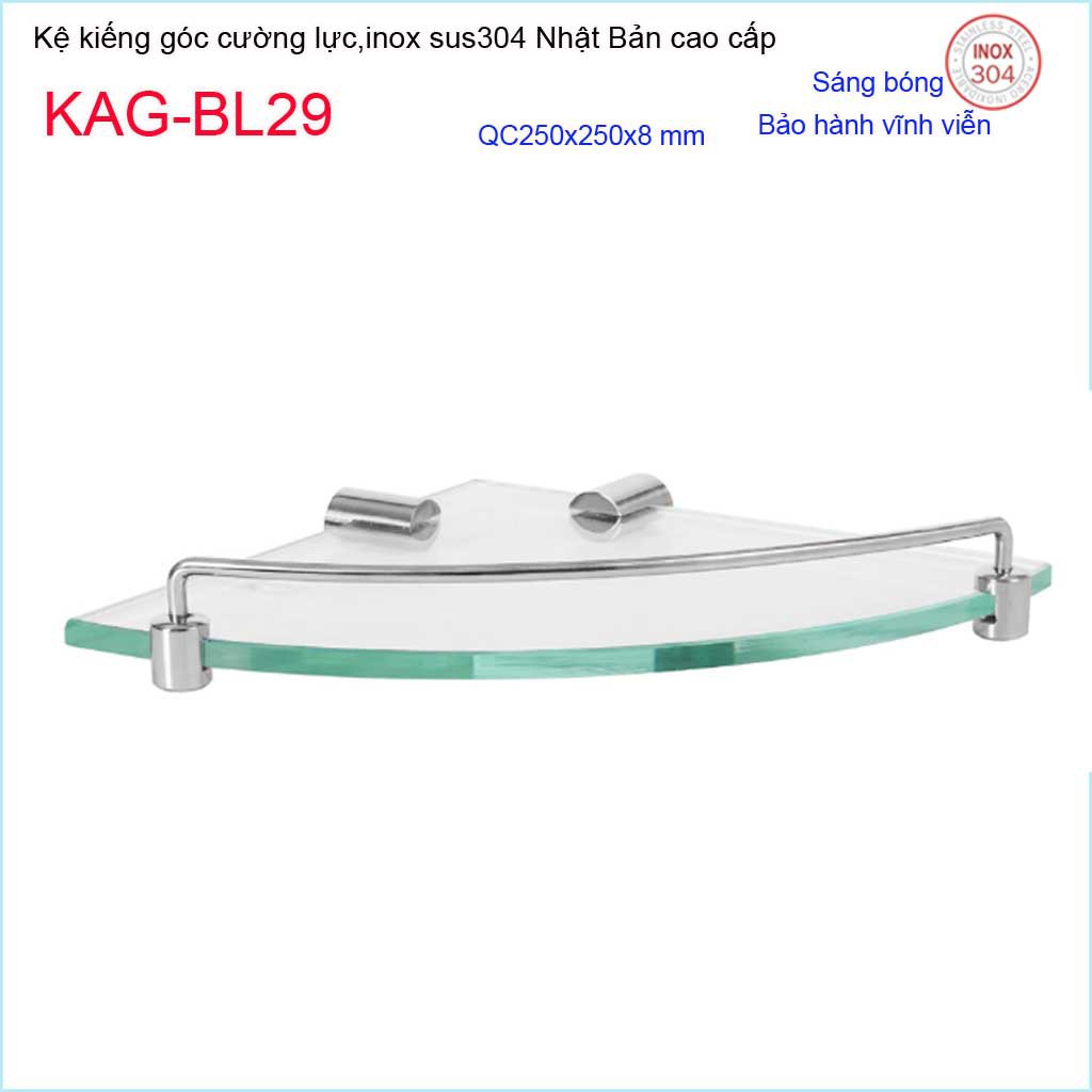 Kệ kính góc cường lực 250x250 mm KAG-BL29, kệ xà phòng tam giác inox SUS304 Nhật Bản thiết kế sang trọng tuyệt đẹp