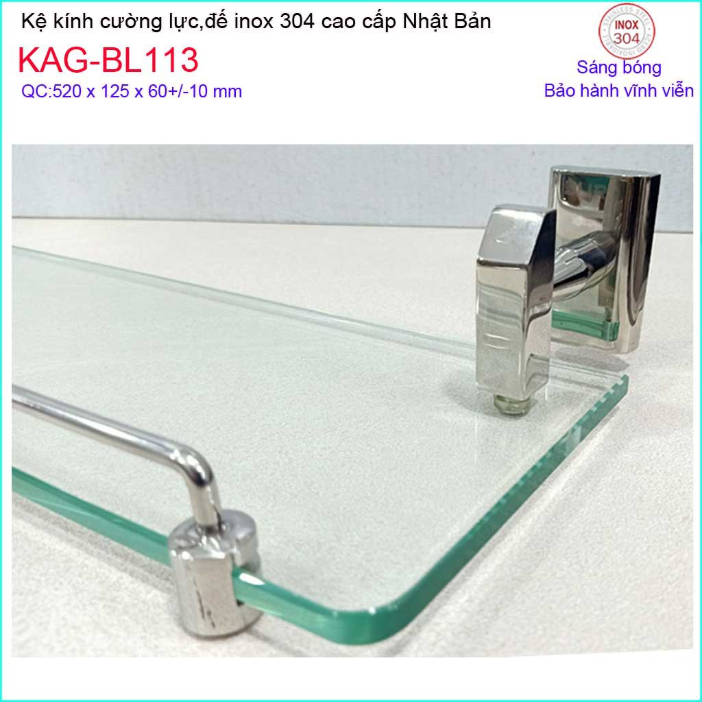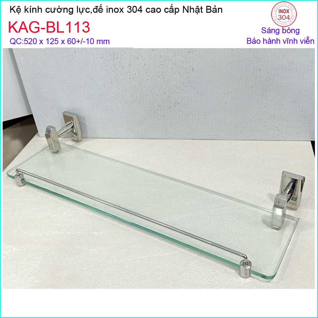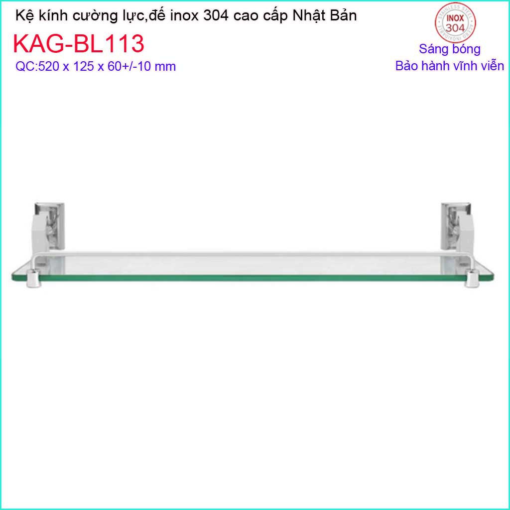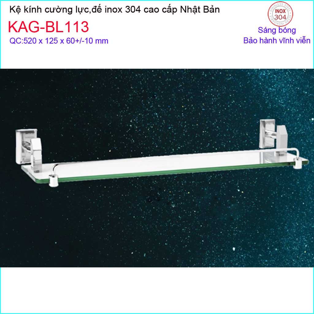 Kệ kính nhà tắm Inox 304 Nhật Bản KAG-BL113, Kệ kiếng cường lực SUS304 thiết kế hiện đại sang trọng tuyệt đẹp