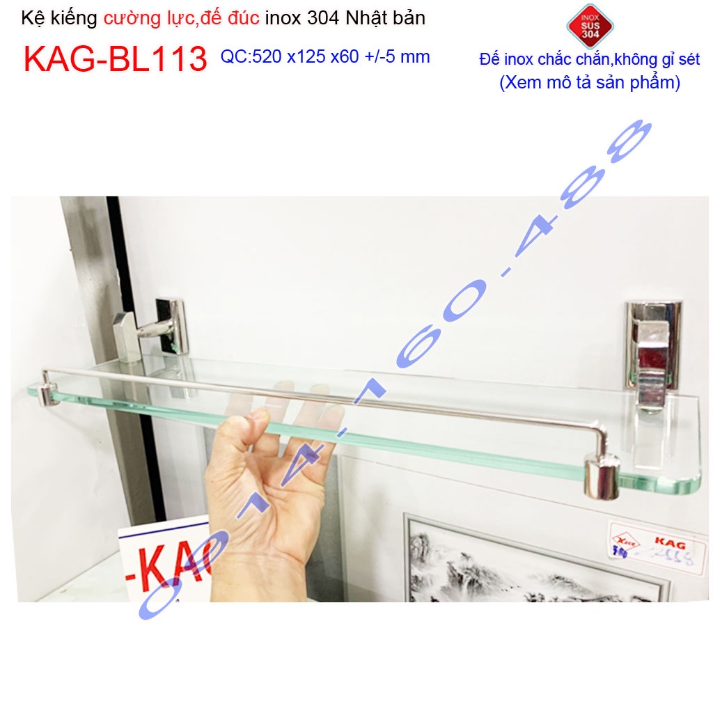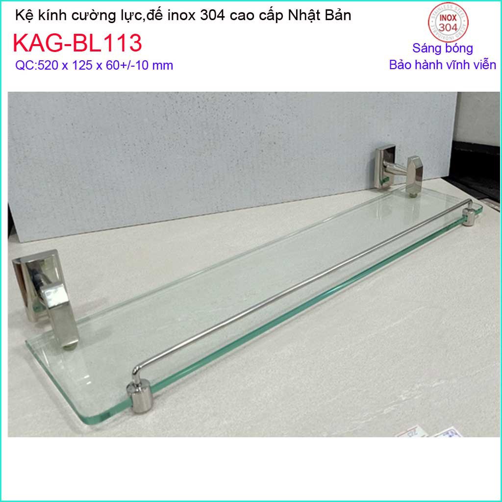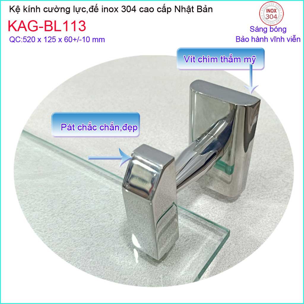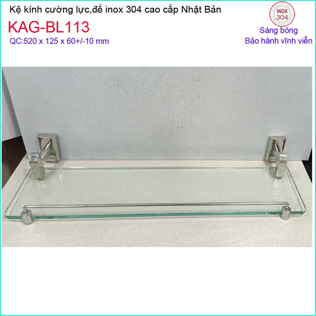 Kệ kính nhà tắm Inox 304 Nhật Bản KAG-BL113, Kệ kiếng cường lực SUS304 thiết kế hiện đại sang trọng tuyệt đẹp