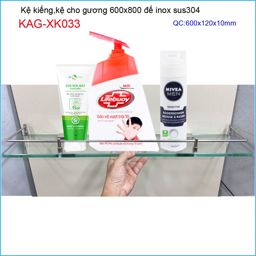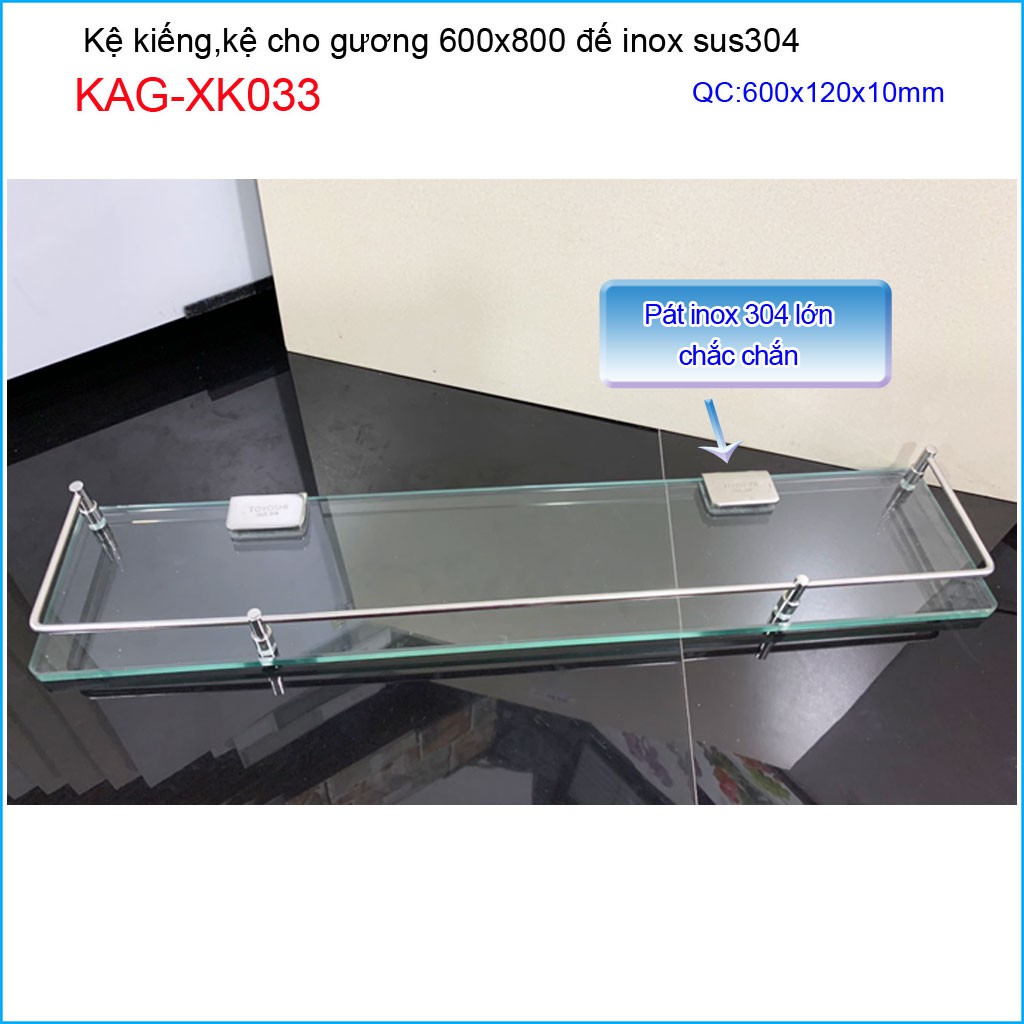 Giới thiệu Kệ kính nhà tắm KAG-XK033-60cm, Kệ phòng tắm 60cm 10ly cao cấp rào chắn siêu chất lượng